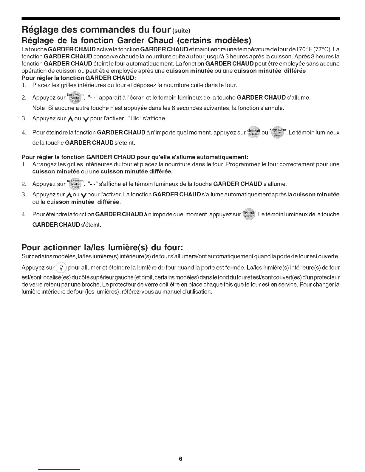 fonction GARDER CHAUD eteint le four automatiquement. La fonction GARDER CHAUD peut _tre employee sans aucune