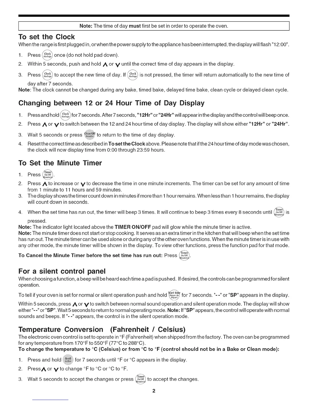 The electronic oven control is set to operate in °F (Fahrenheit) when shipped from the factory. The oven can be programmed