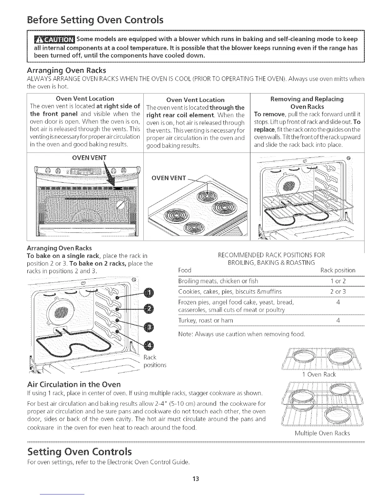 ALWAYS ARRANGEOVEN RACKSWHEN THE OVEN ISCOOL (PRIORTO OPERATINGTHE OVEN).Always useoven mitts when