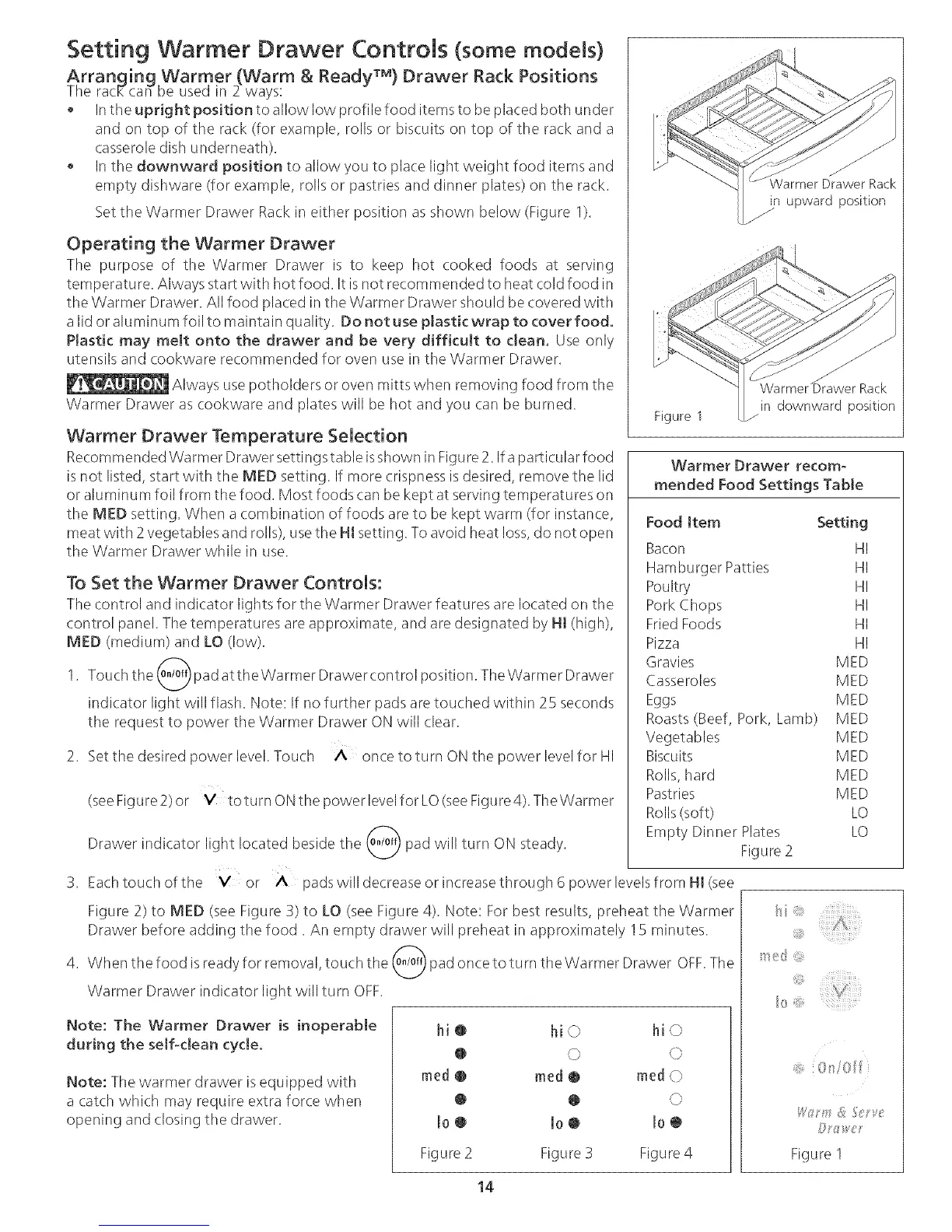 Recommended Warmer Drawer settingstable isshown in Figure2. If aparticular food