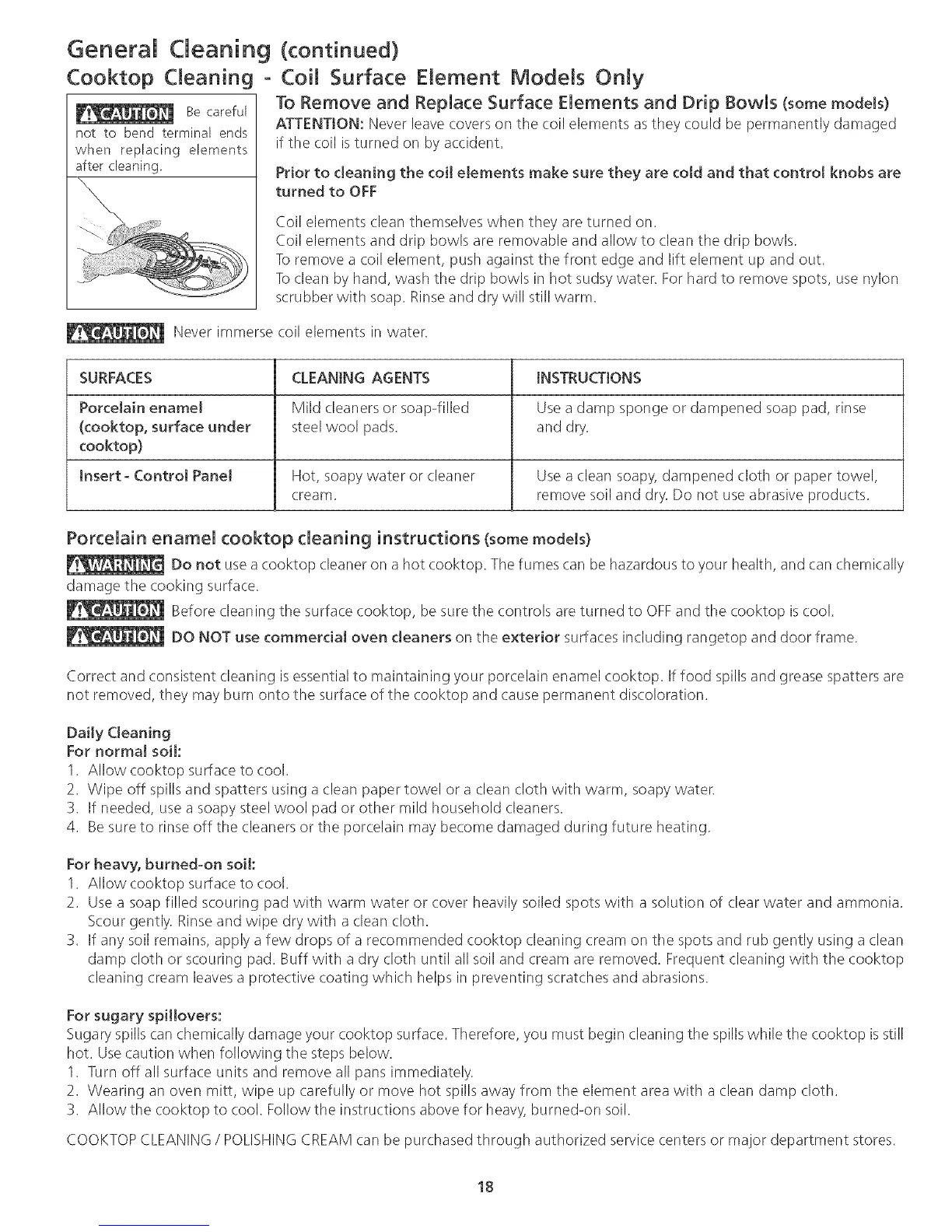 Before cleaning the surface cooktop, be sure tile controls are turned to OFFand the cooktop is cool.