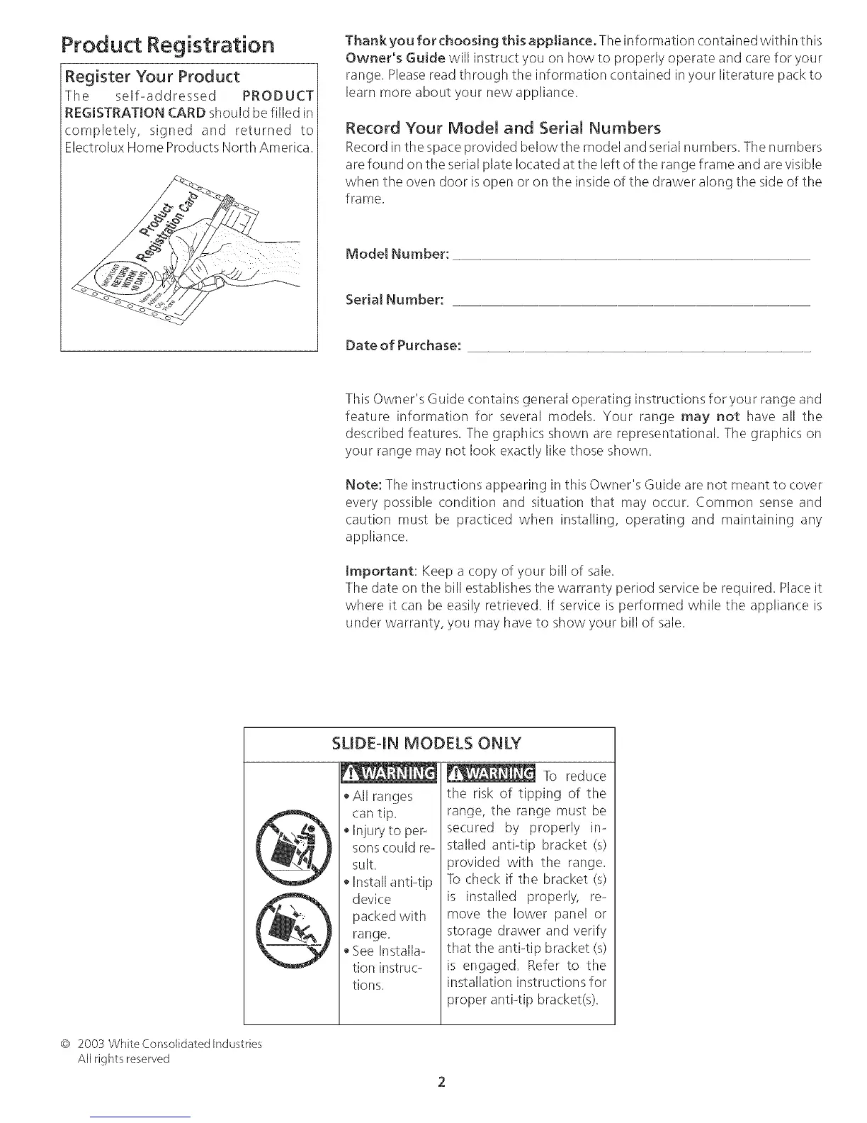 This Owner's Guide contains general operating instructions for your range and
