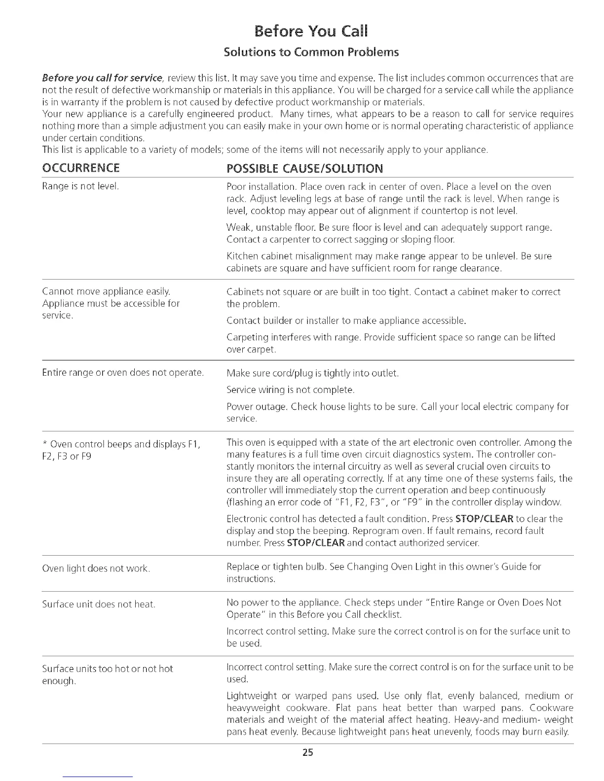 Before you call for service, review this list. It may saveyou time and expense. The list includes common occurrences that are
