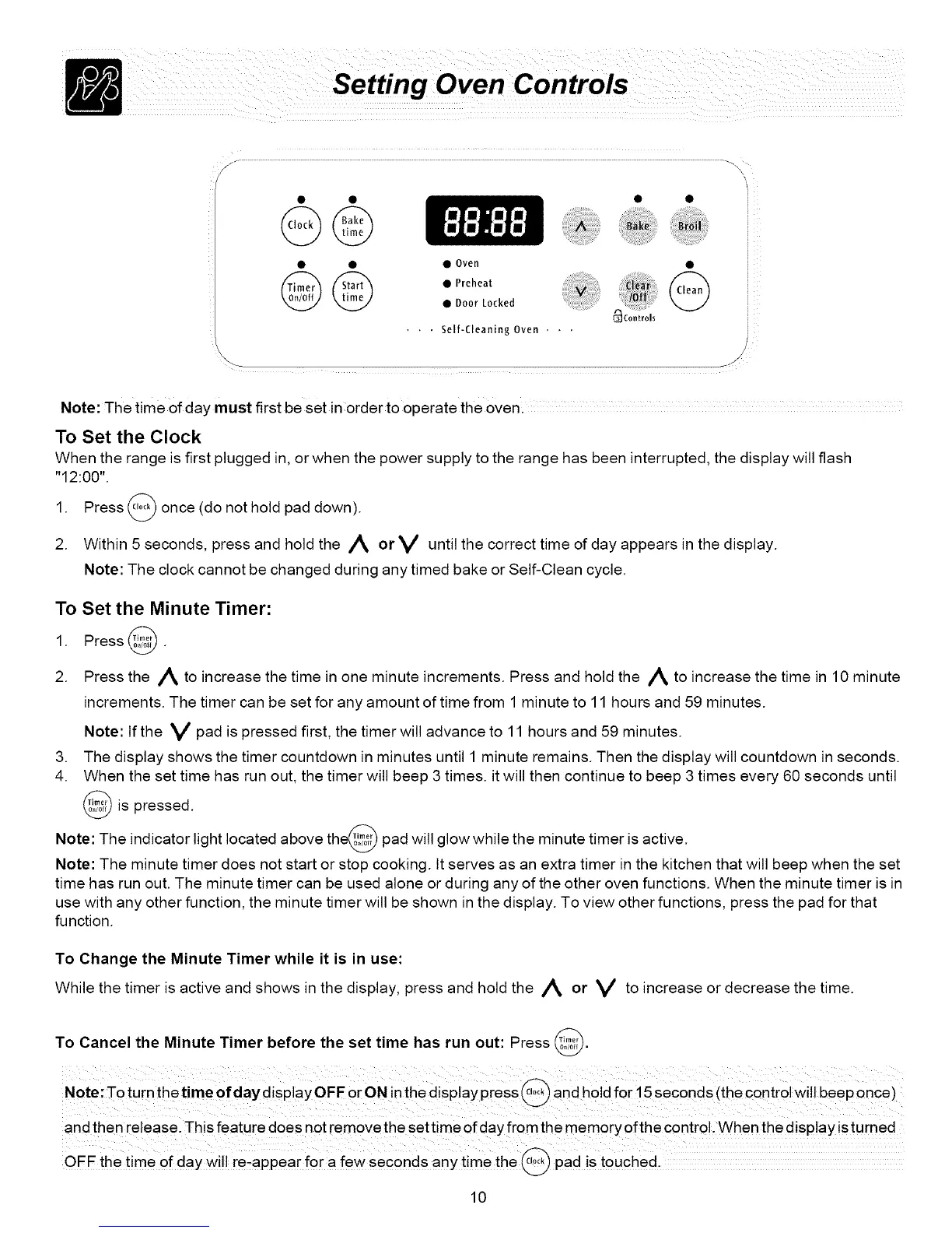Note: The time of day must first be set in order to operate the oven.