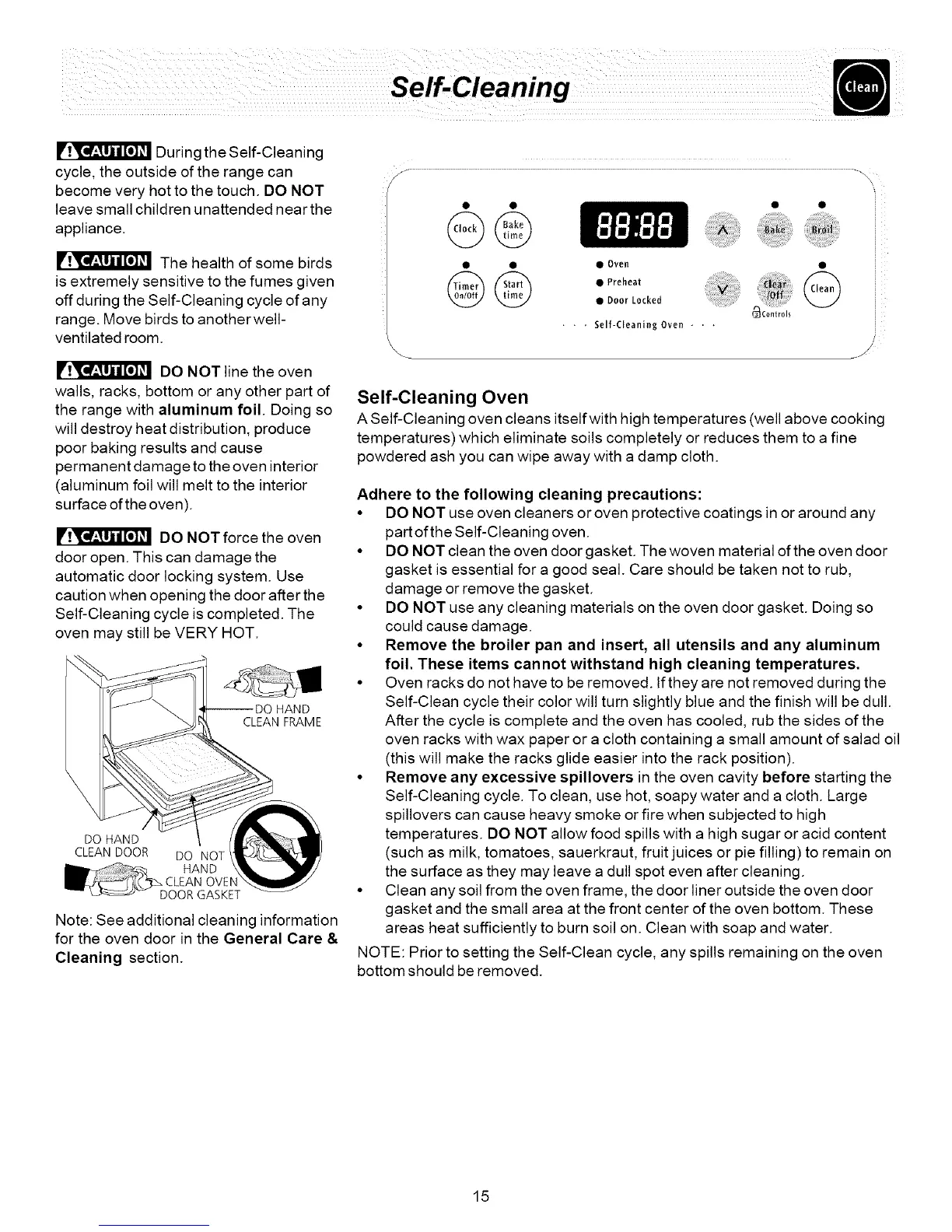 NOTE: Prior to setting the Self-Clean cycle, any spills remaining on the oven