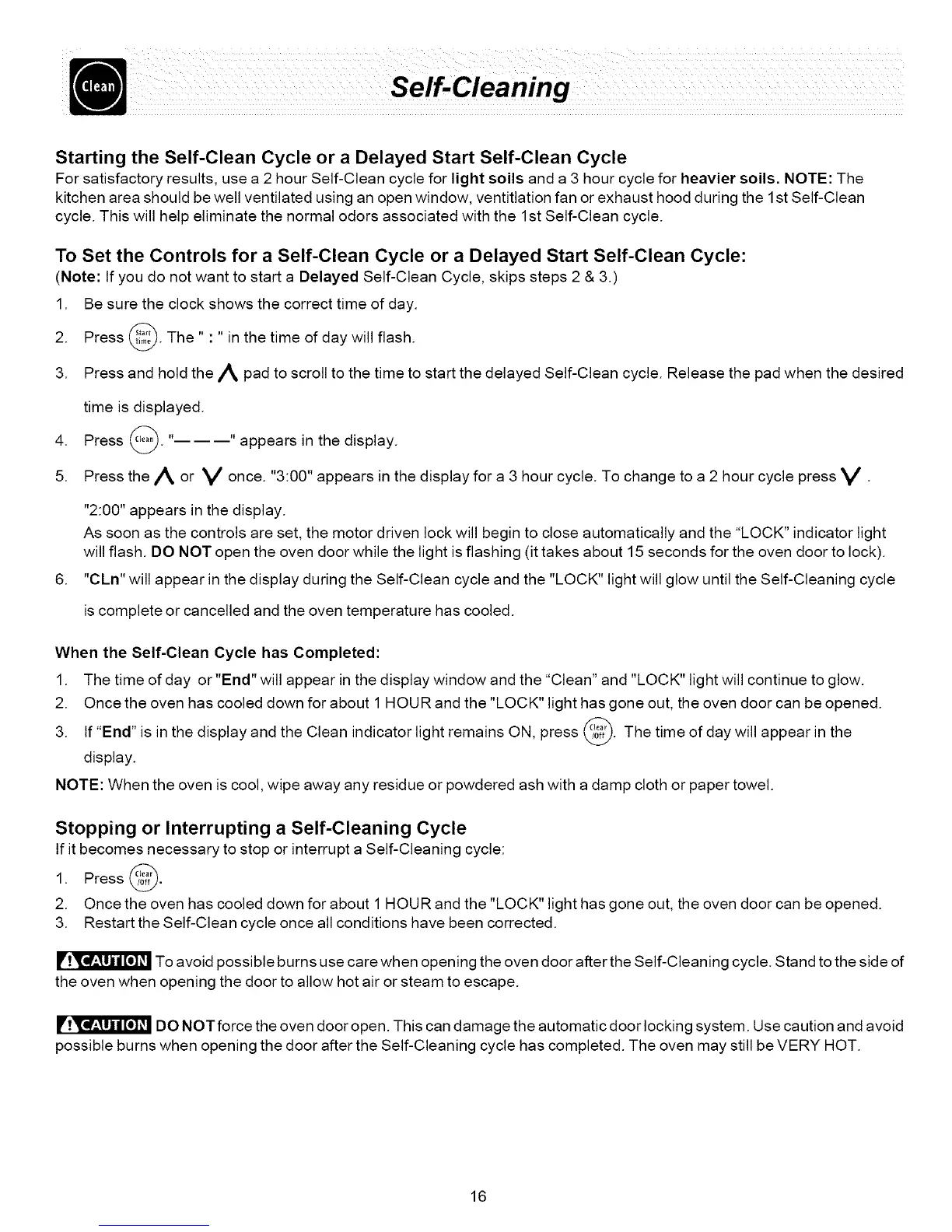 If it becomes necessary to stop or interrupt a Self-Cleaning cycle: