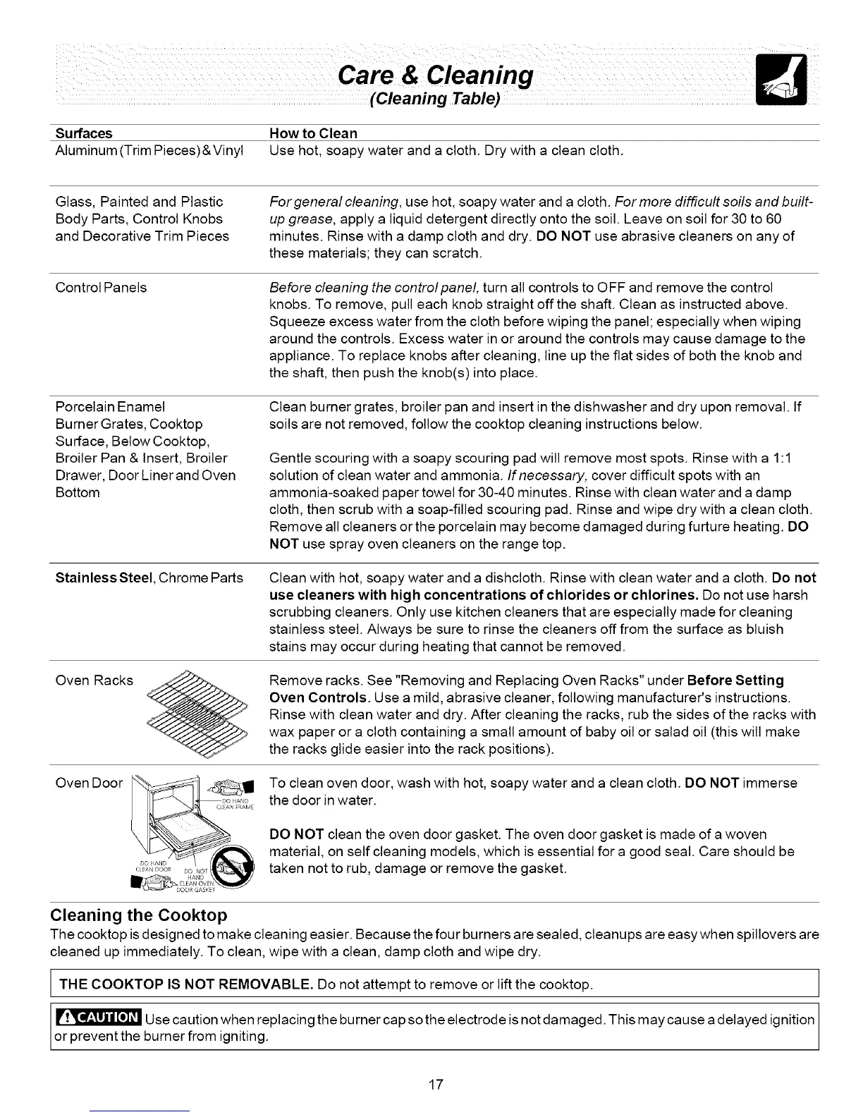 THE COOKTOP IS NOT REMOVABLE. Do not attempt to remove or lift the cooktop.