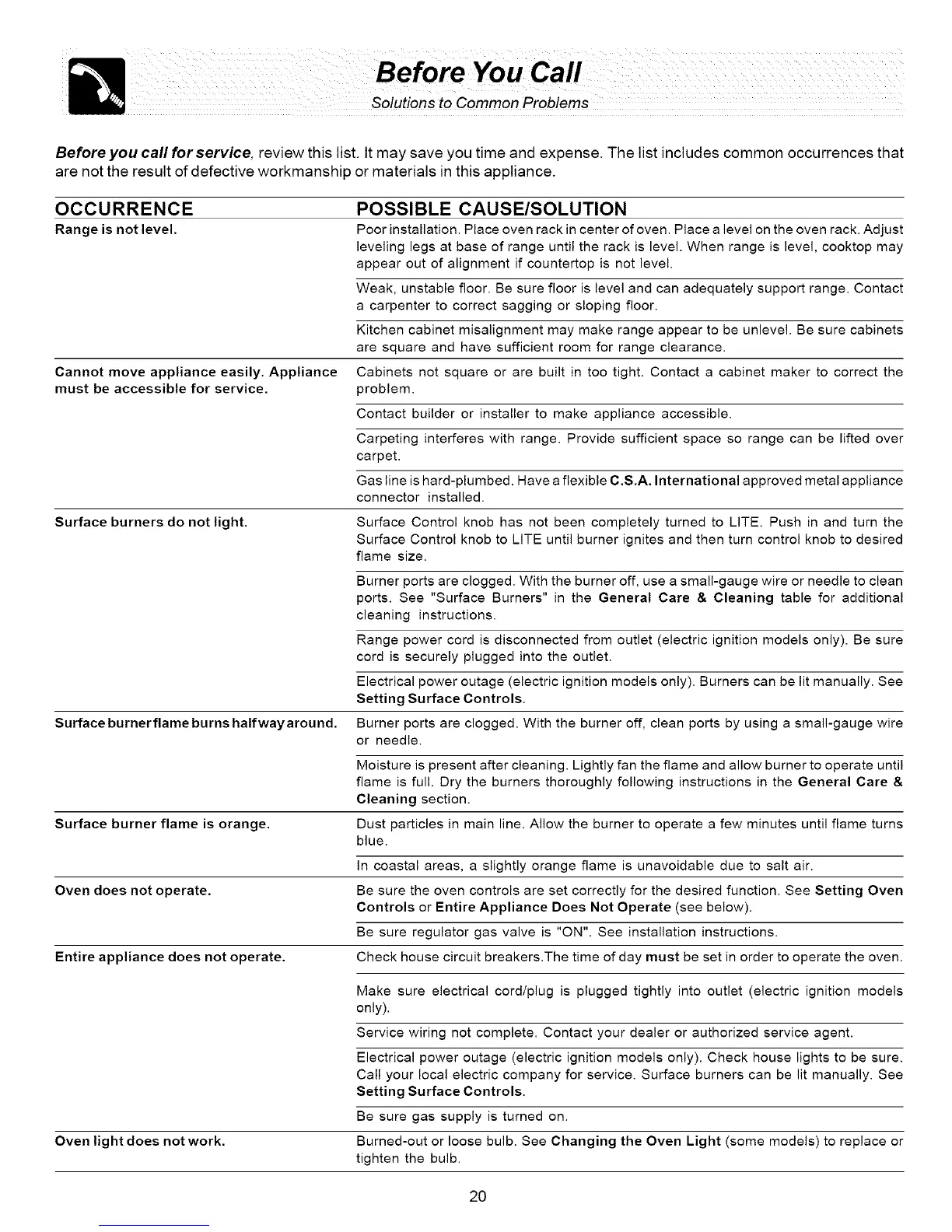 Before you call for service, review this list. It may save you time and expense. The list includes common occurrences that