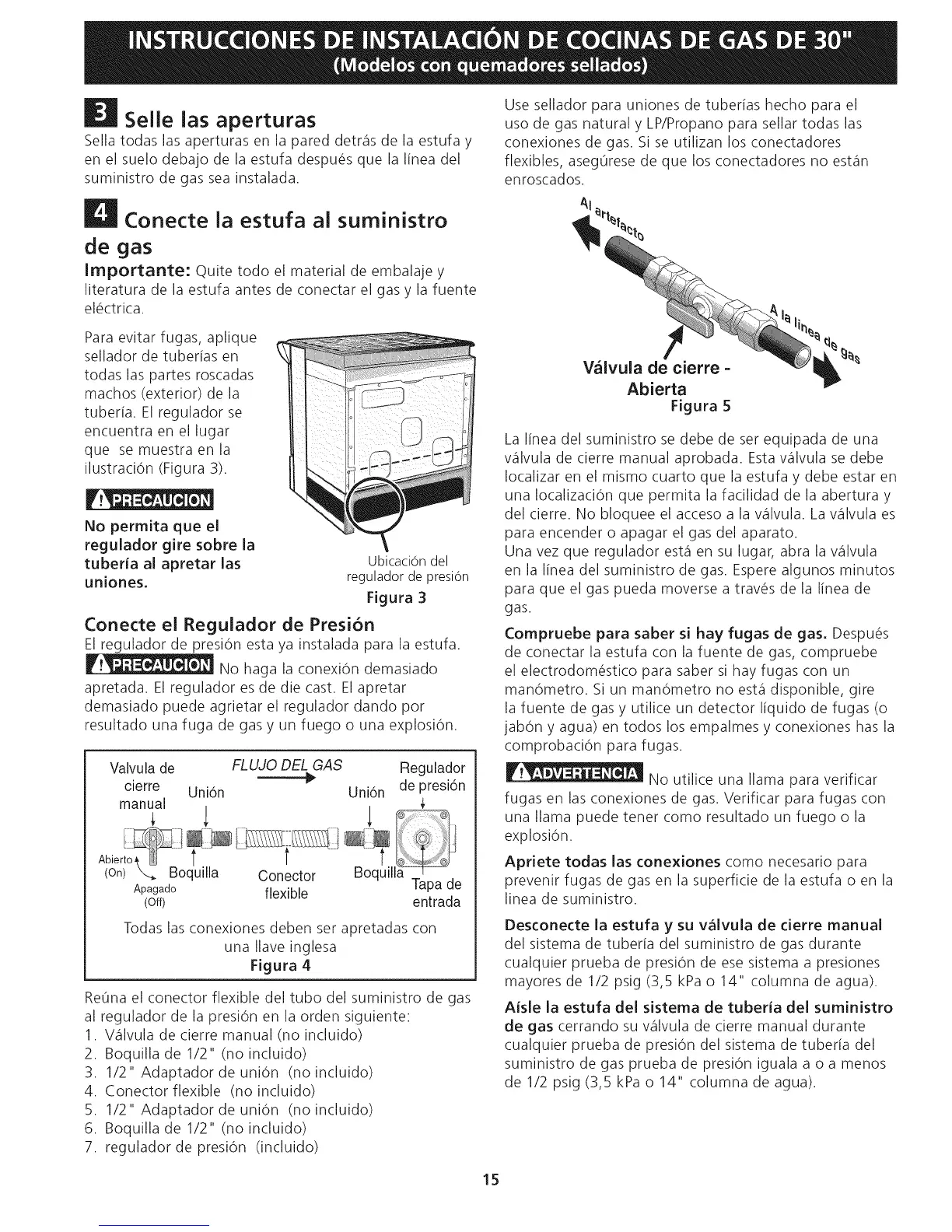 Compruebe para saber si hay fugas de gas. Despu@s