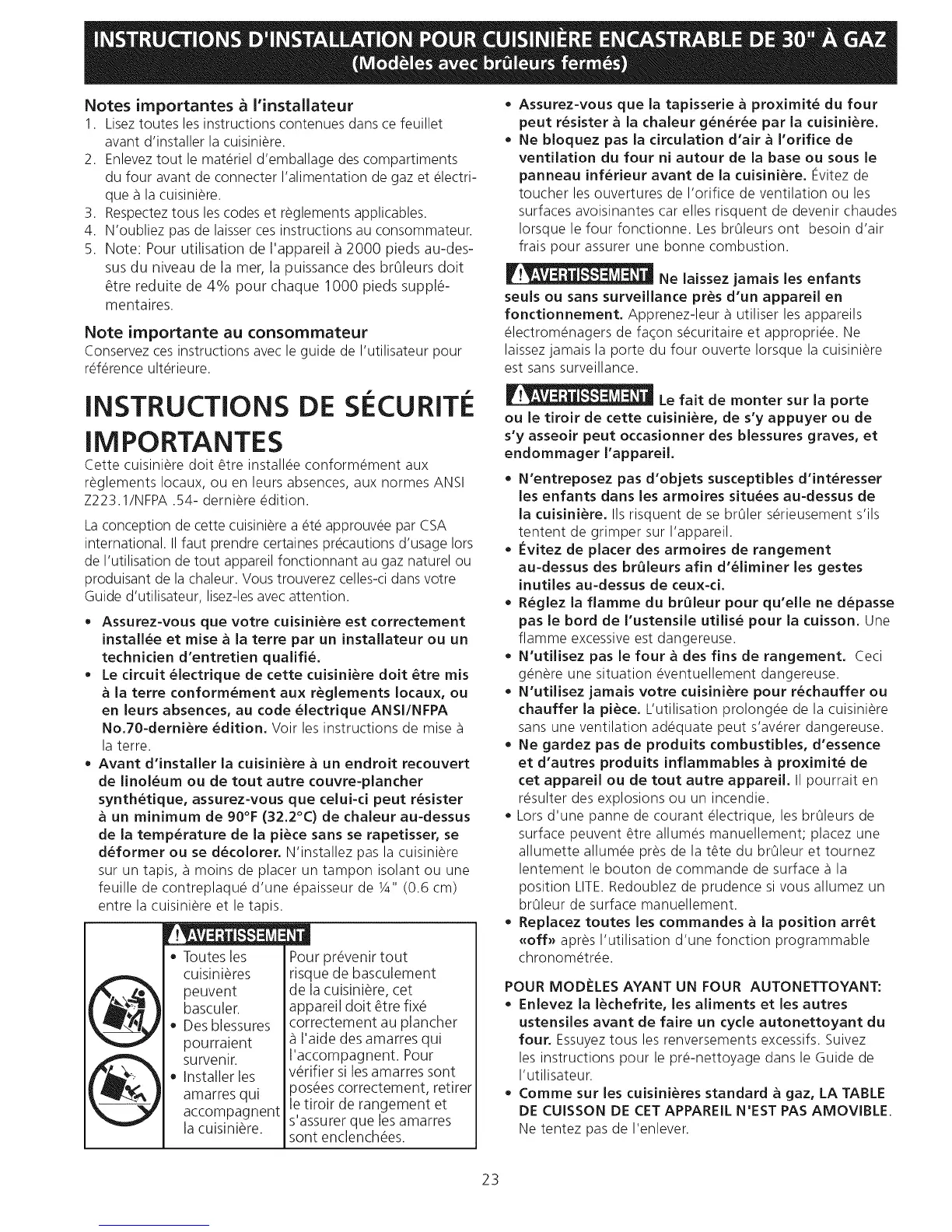 deforrner ou se decolorer. N'installez pas la cuisiniere