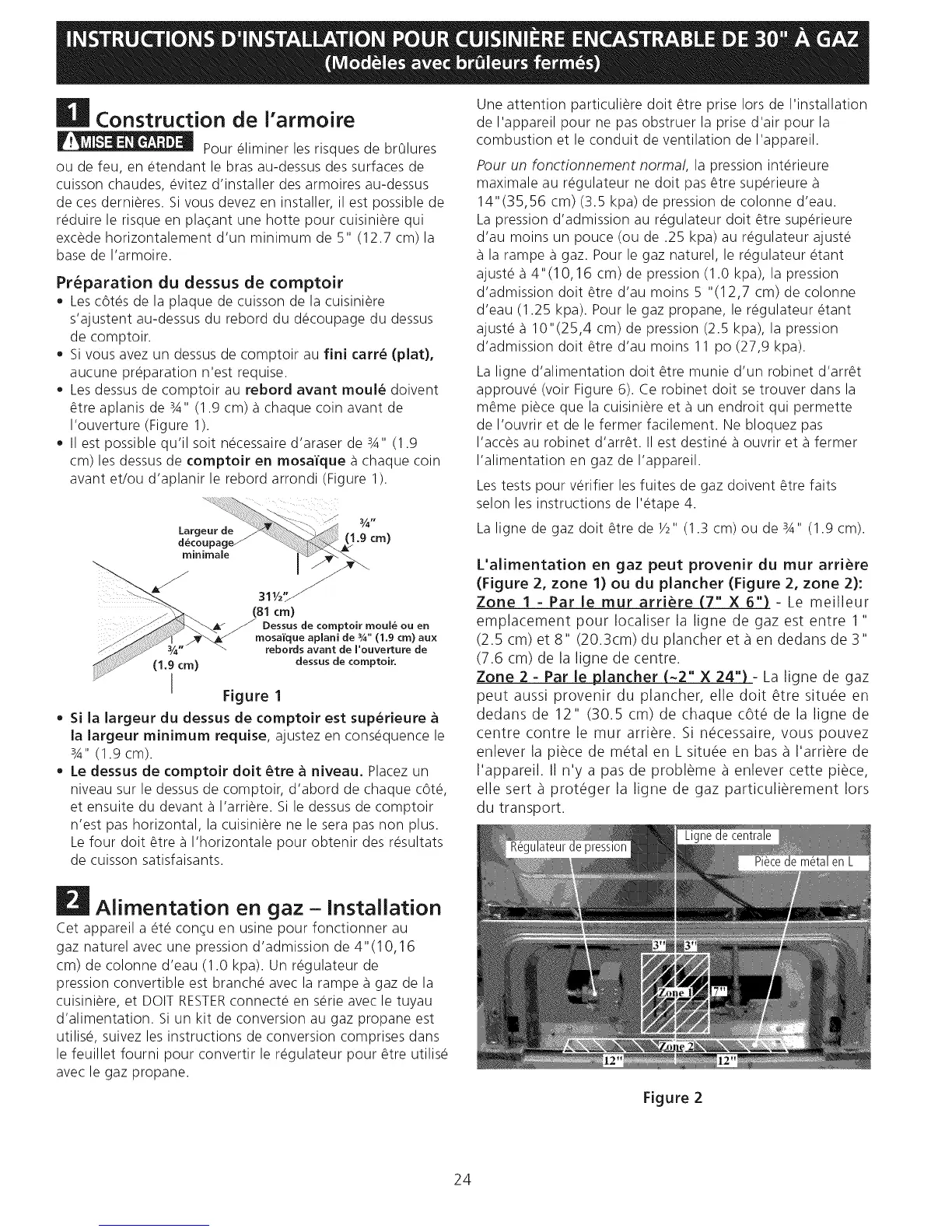• Le dessus de cornptoir doit _tre a niveau. Placez un