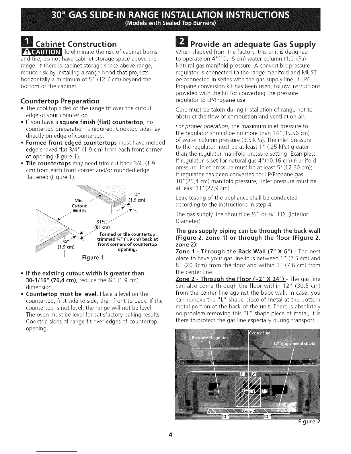 10"(25,4 cm) manifold pressure, inlet pressure must be