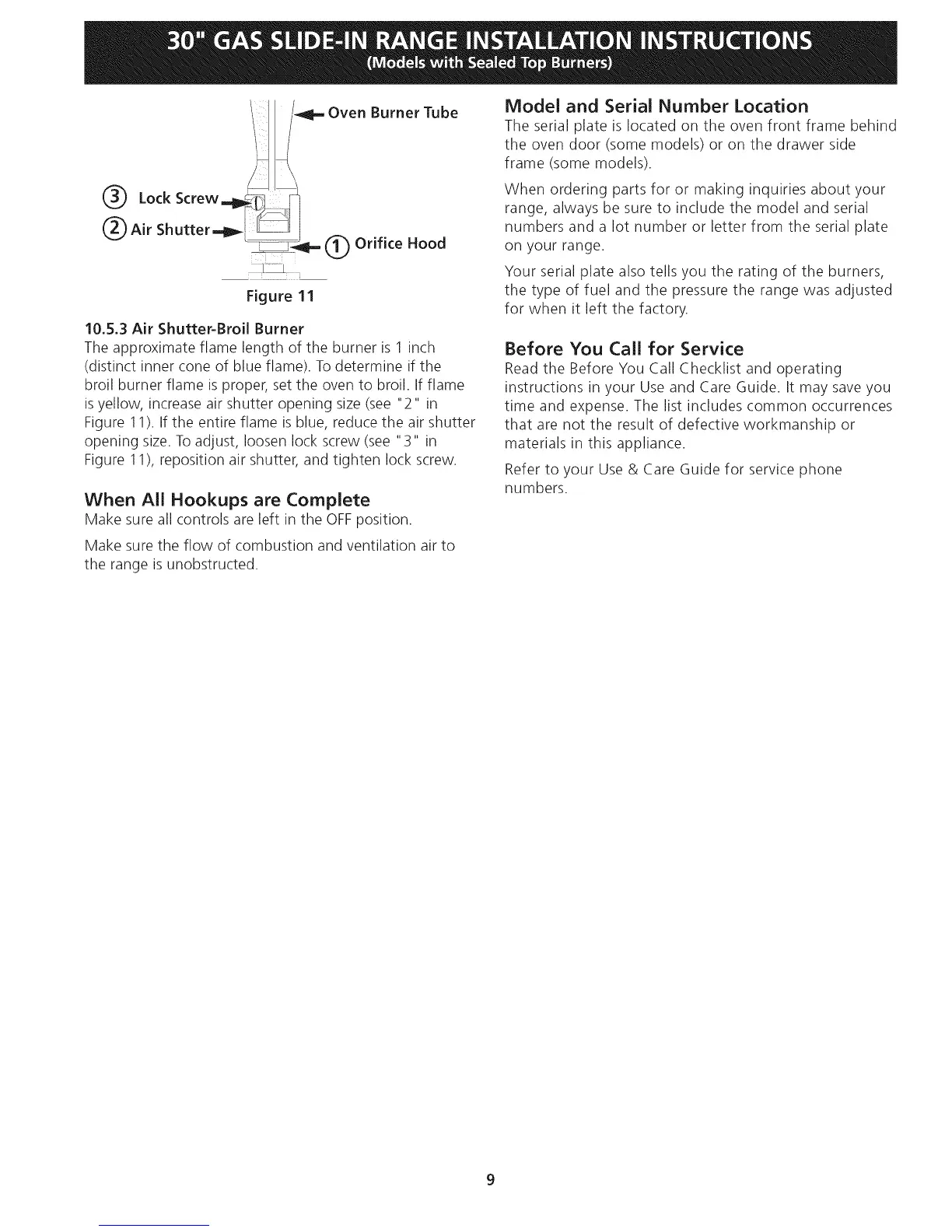 Figure 11). If the entire flame is blue, reduce the air shutter