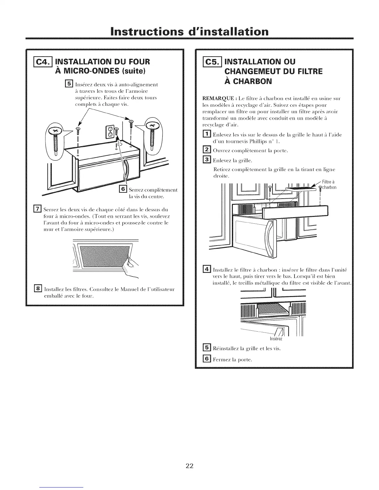 REMARQUE : Le filtre _'_charbon est install_ en usine sur