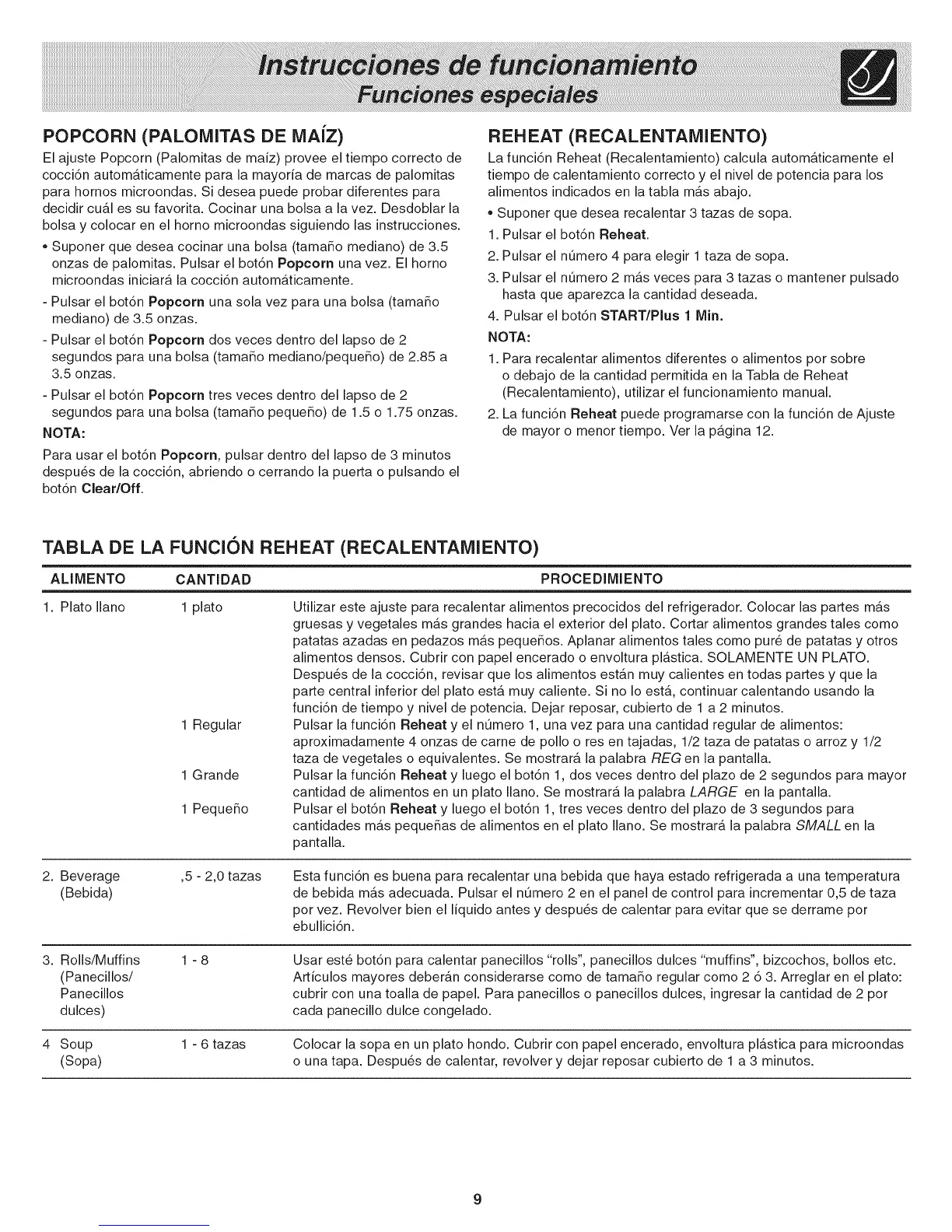 Pulsar la funci6n Reheat y luego el bot6n 1, dos veces dentro del plazo de 2 segundos para mayor