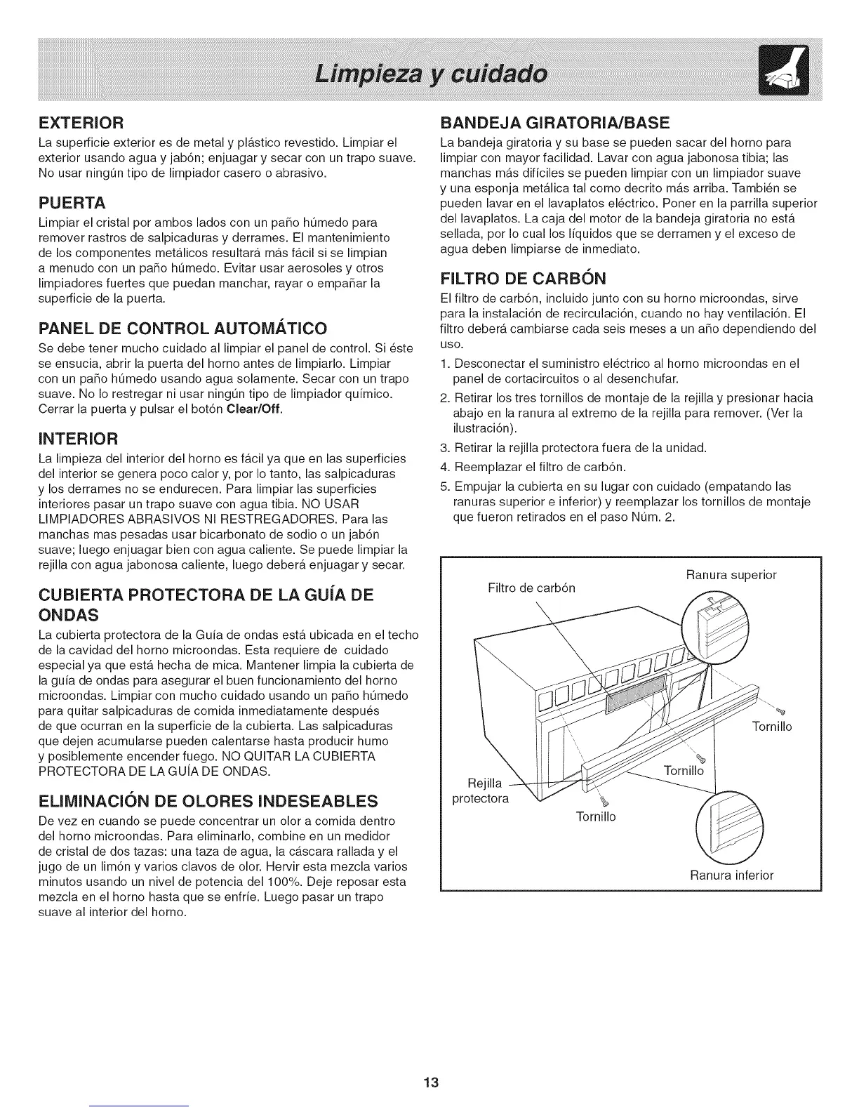 de la cavidad del homo microondas. Esta requiere de cuidado