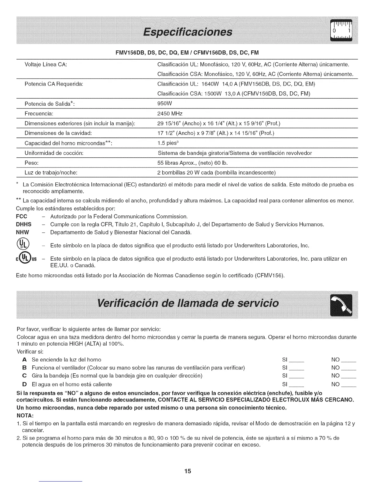 Este homo microondas esta listado por la Asociaci6n de Normas Canadiense segOn Io certificado (CFMV156).