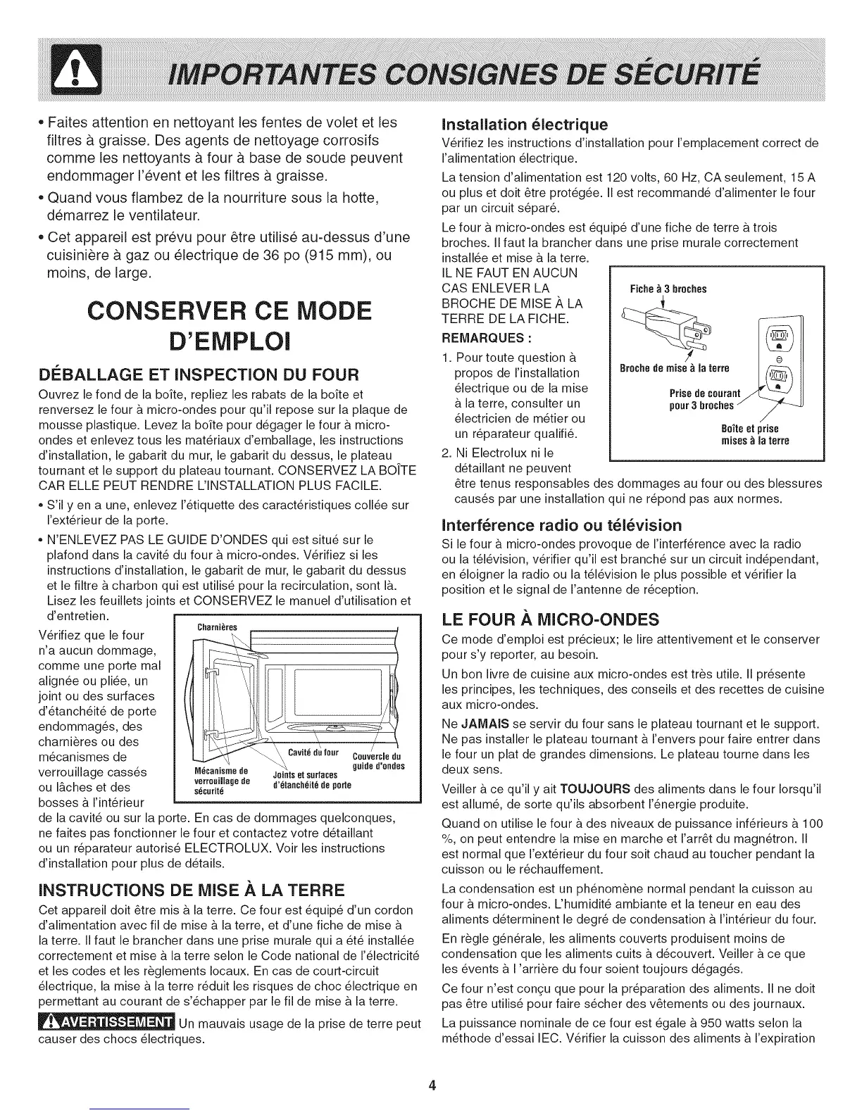 ondes et enlevez tousles mat6riaux d'emballage, les instructions