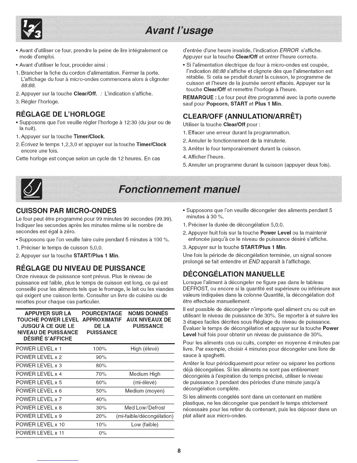 POWER LEVEL x 8 30% Med Low/Defrost