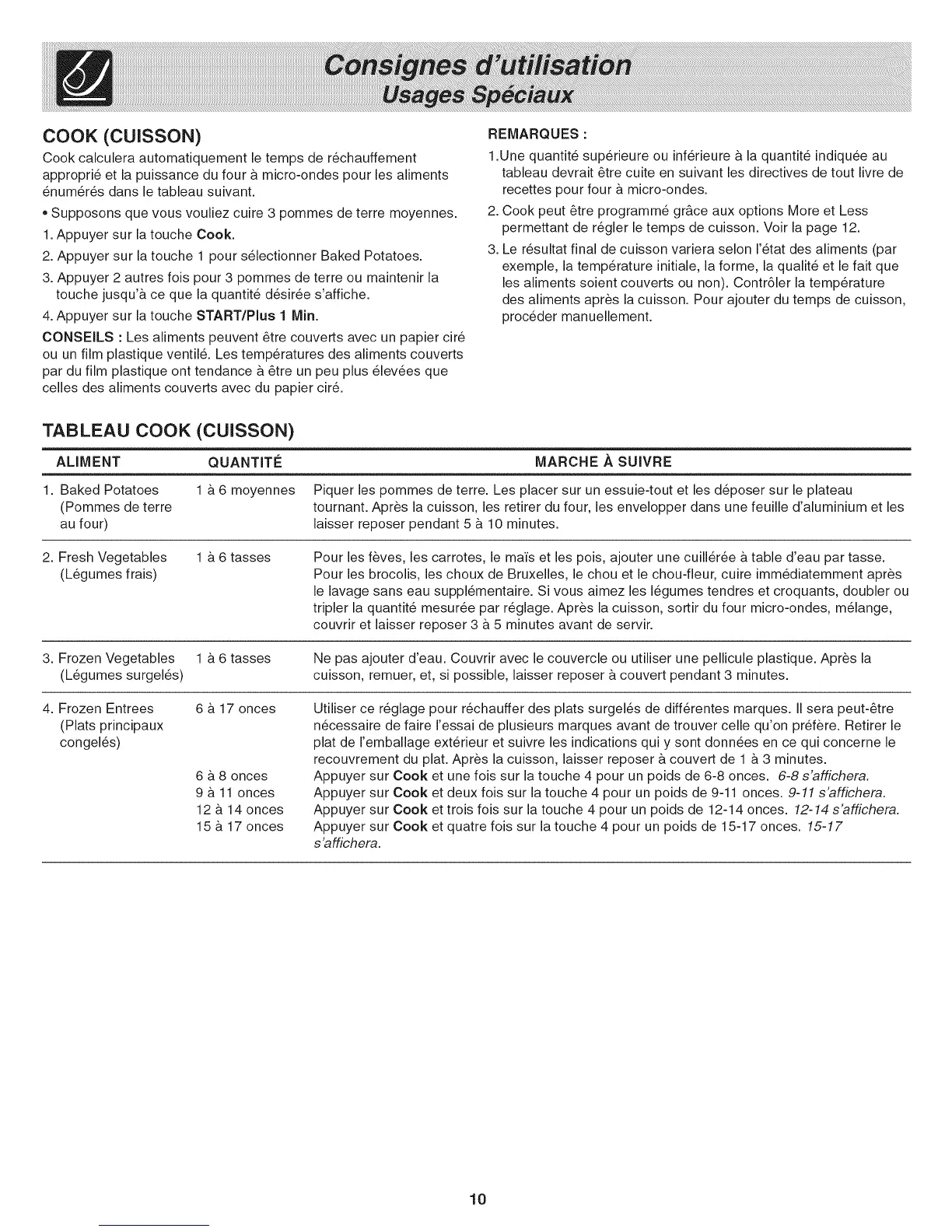 3. Le r6sultat final de cuisson variera selon 1'6tat des aliments (par