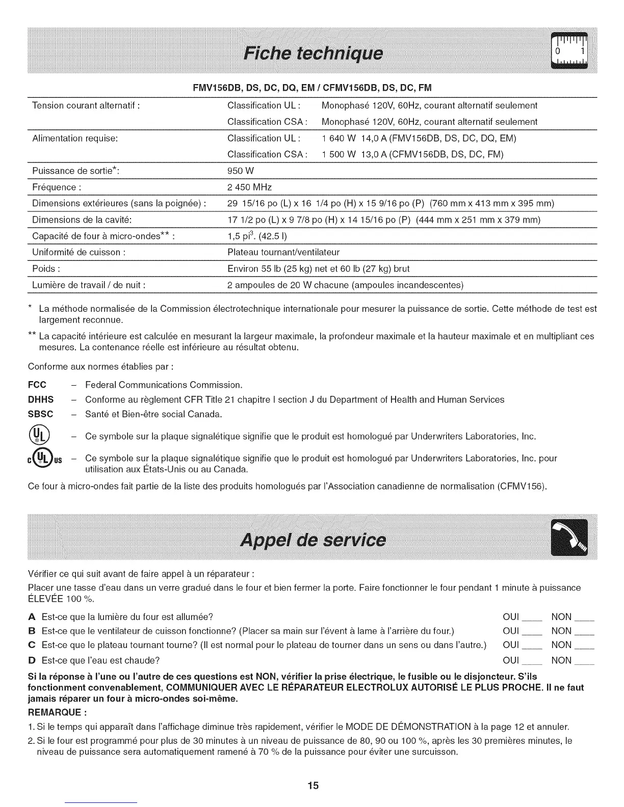 Ce four & micro-ondes fait partie de la liste des produits homologu6s par I'Association canadienne de normalisation (CFMV156).