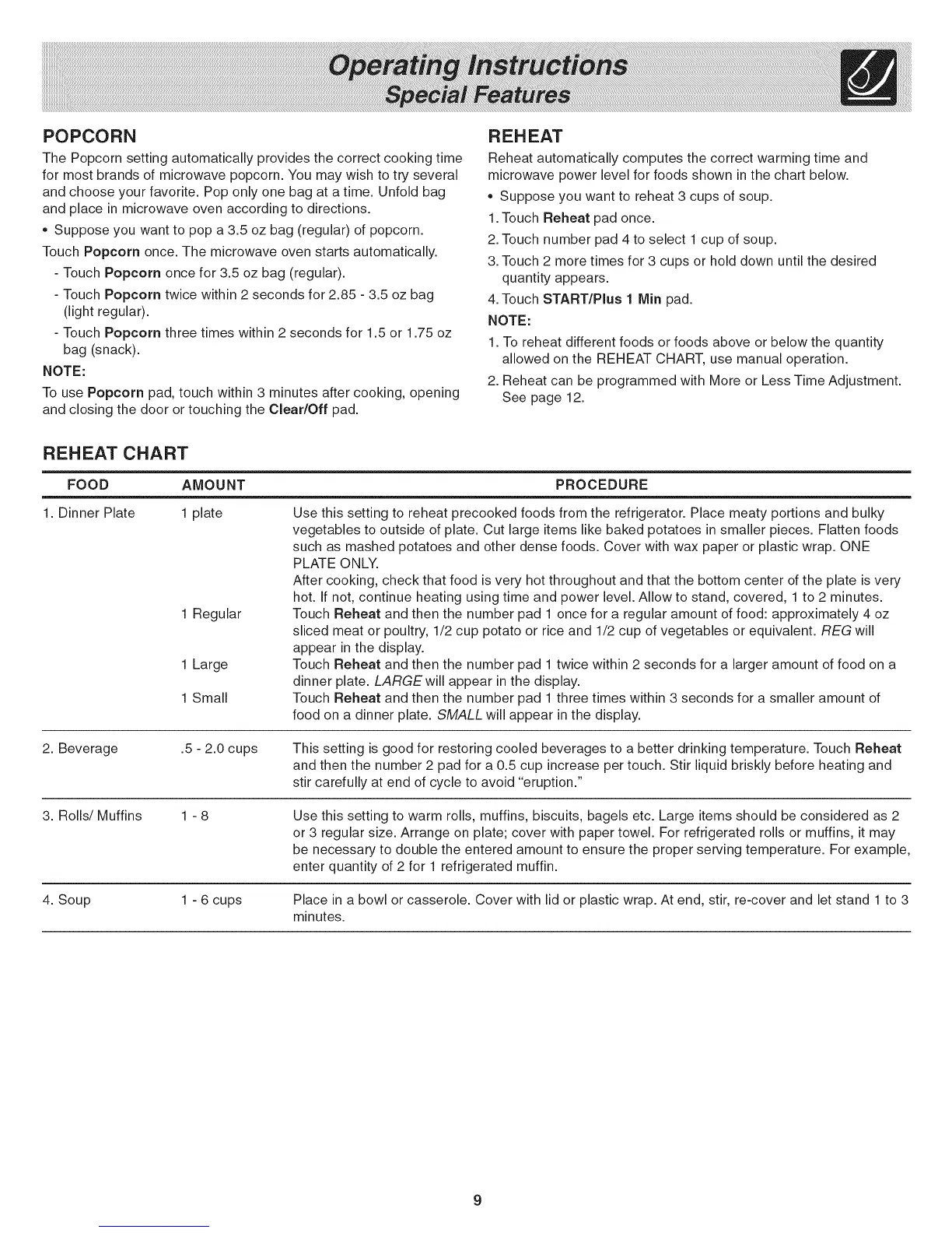 2. Reheat can be programmed with More or Less Time Adjustment.