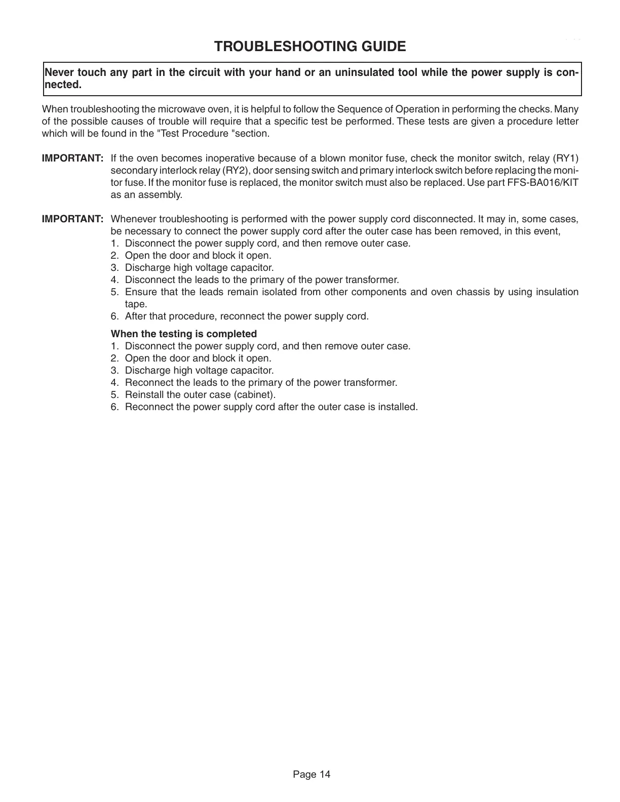 When troubleshooting the microwave oven, it is helpful to follow the Sequence of Operation in performing the checks. Many