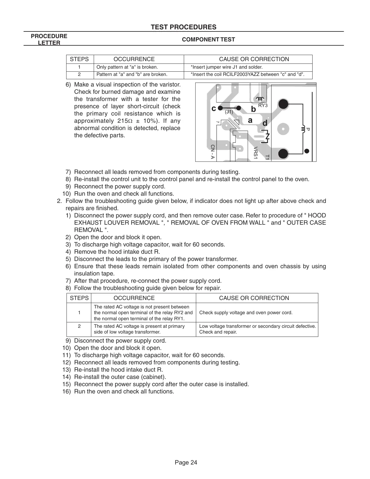 1 the normal open terminal of the relay RY2 and Check supply voltage and oven power cord.