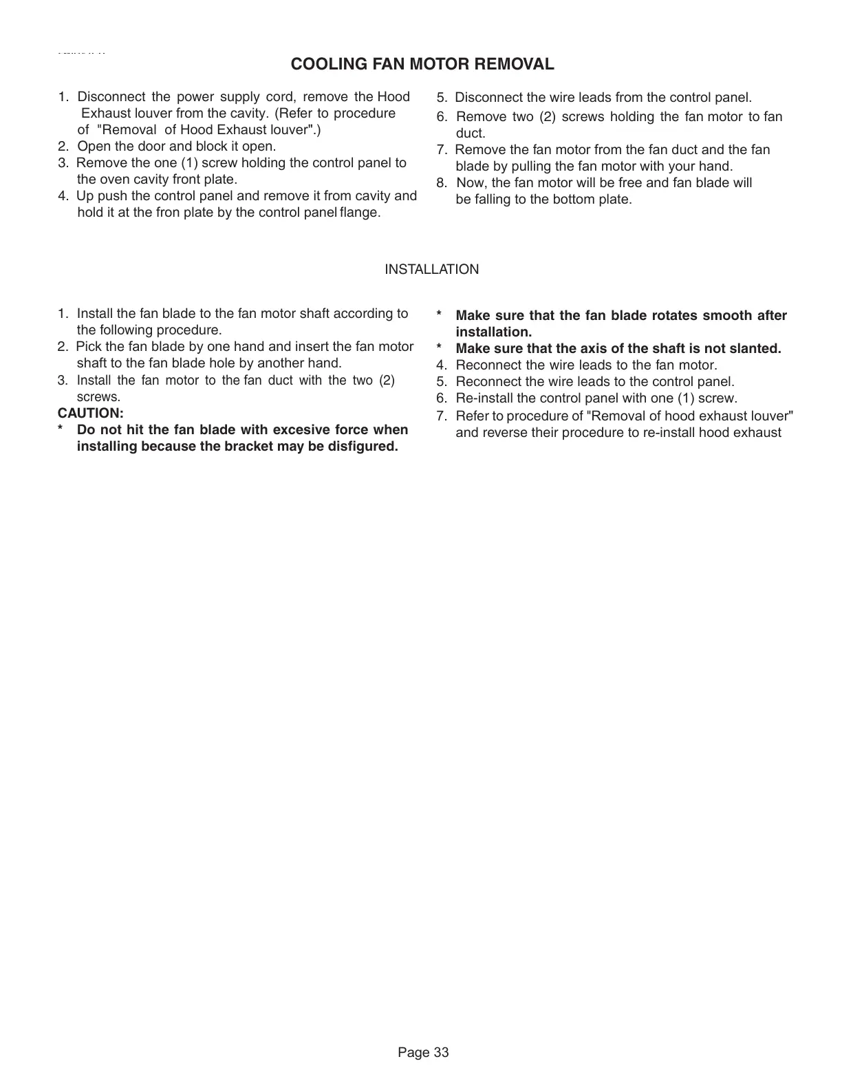 1. Install the fan blade to the fan motor shaft according to