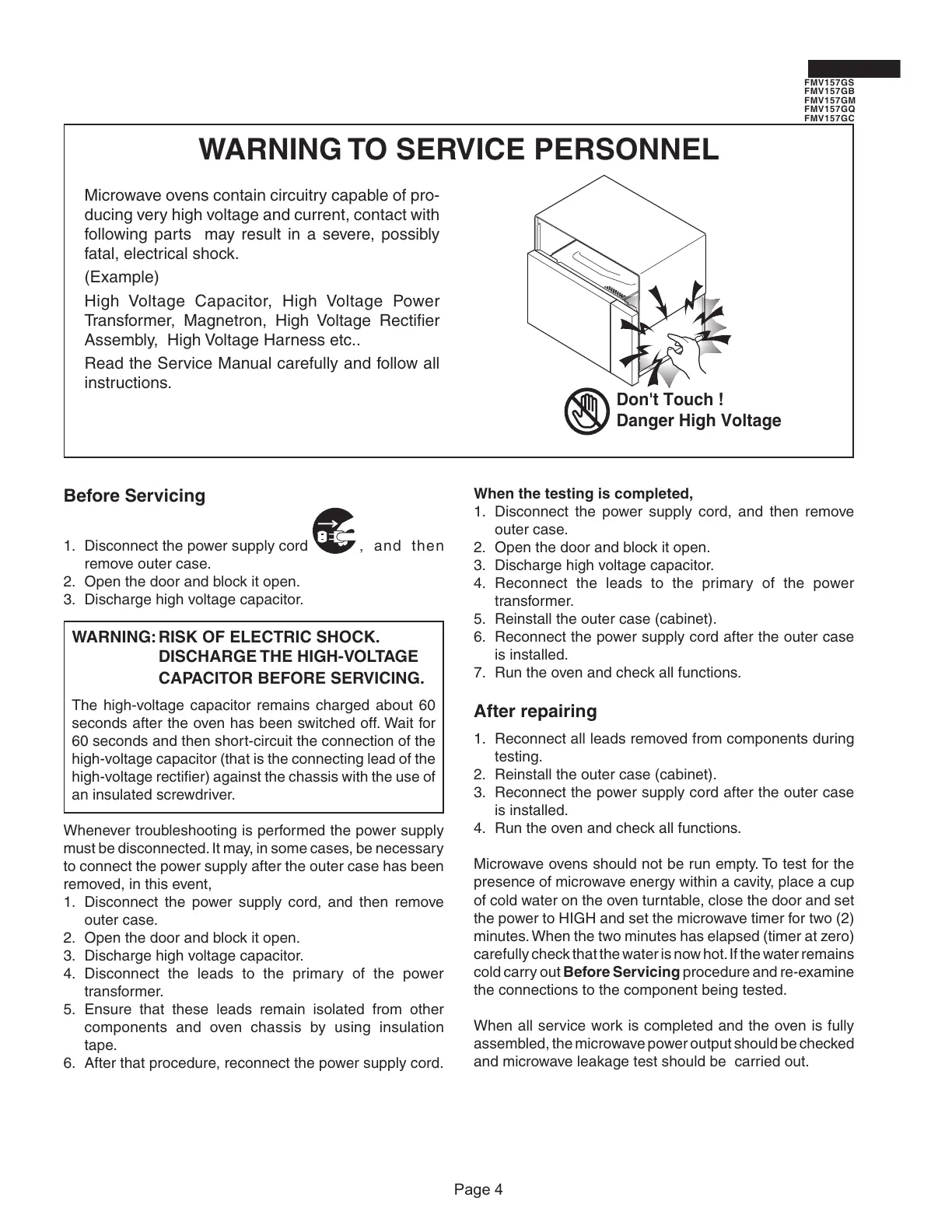 3. Discharge high voltage capacitor.