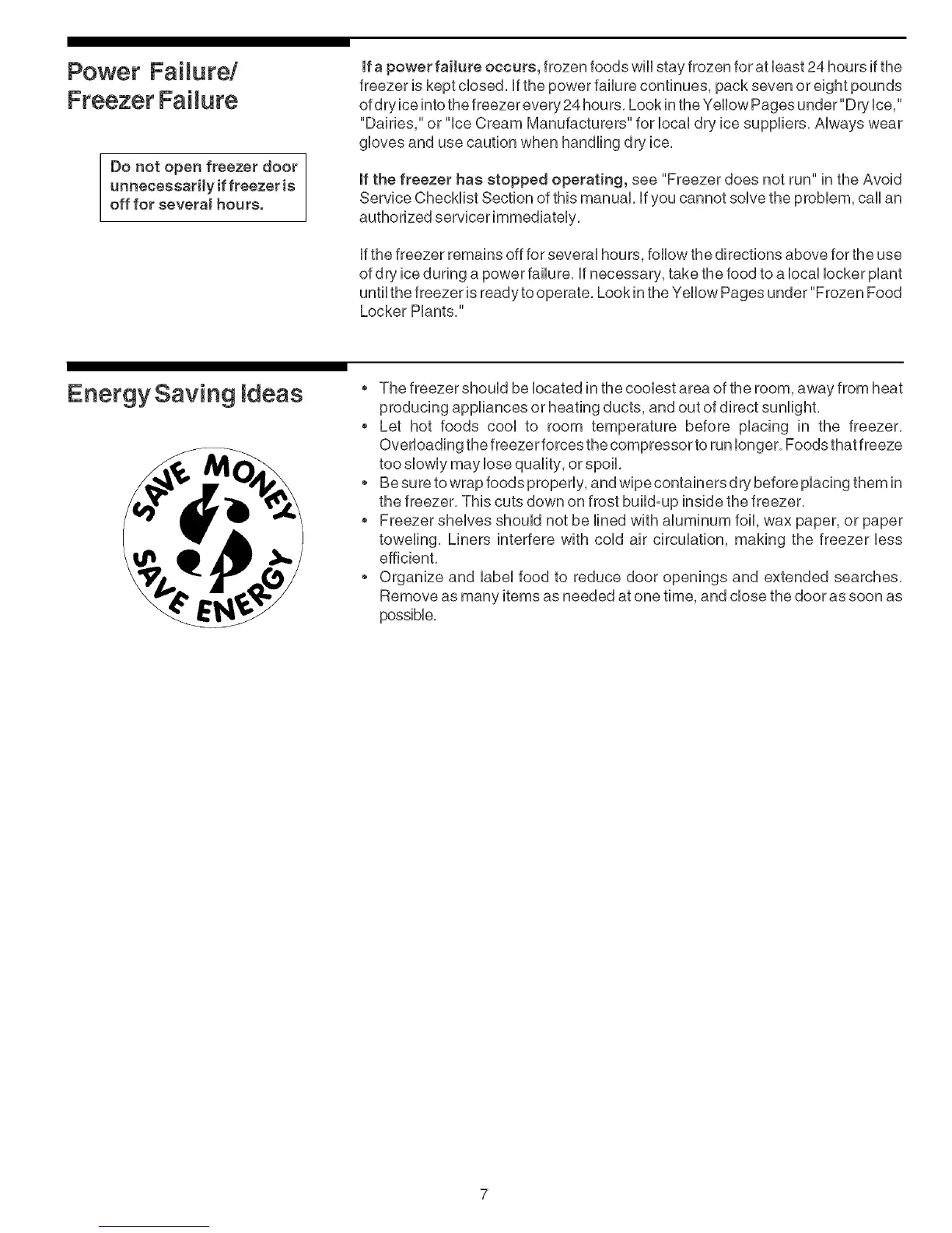 freezer is kept closed, if the power failure continues, pack seven or eight pounds