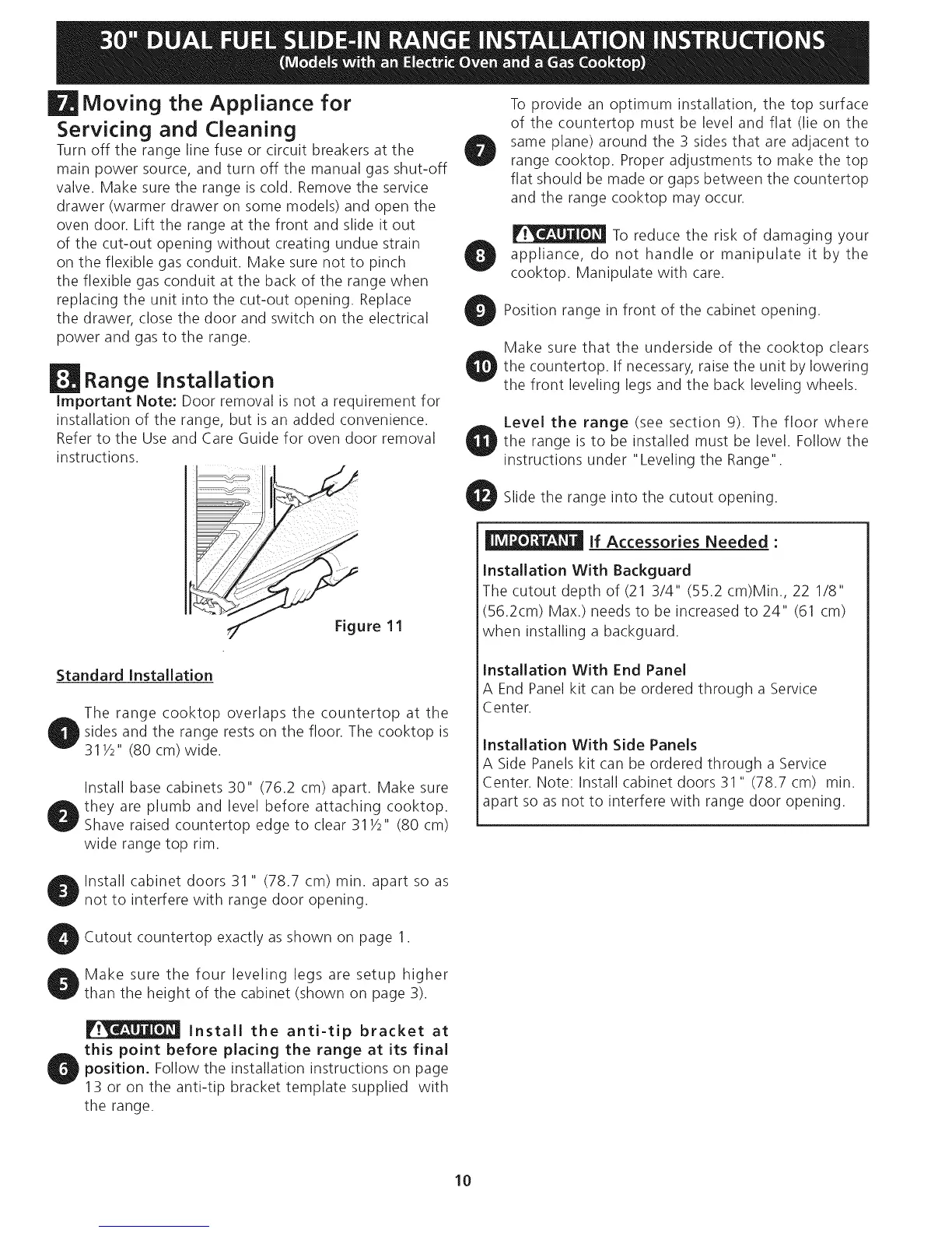 Install cabinet doors 31 " (78.7 cm) min. apart so as