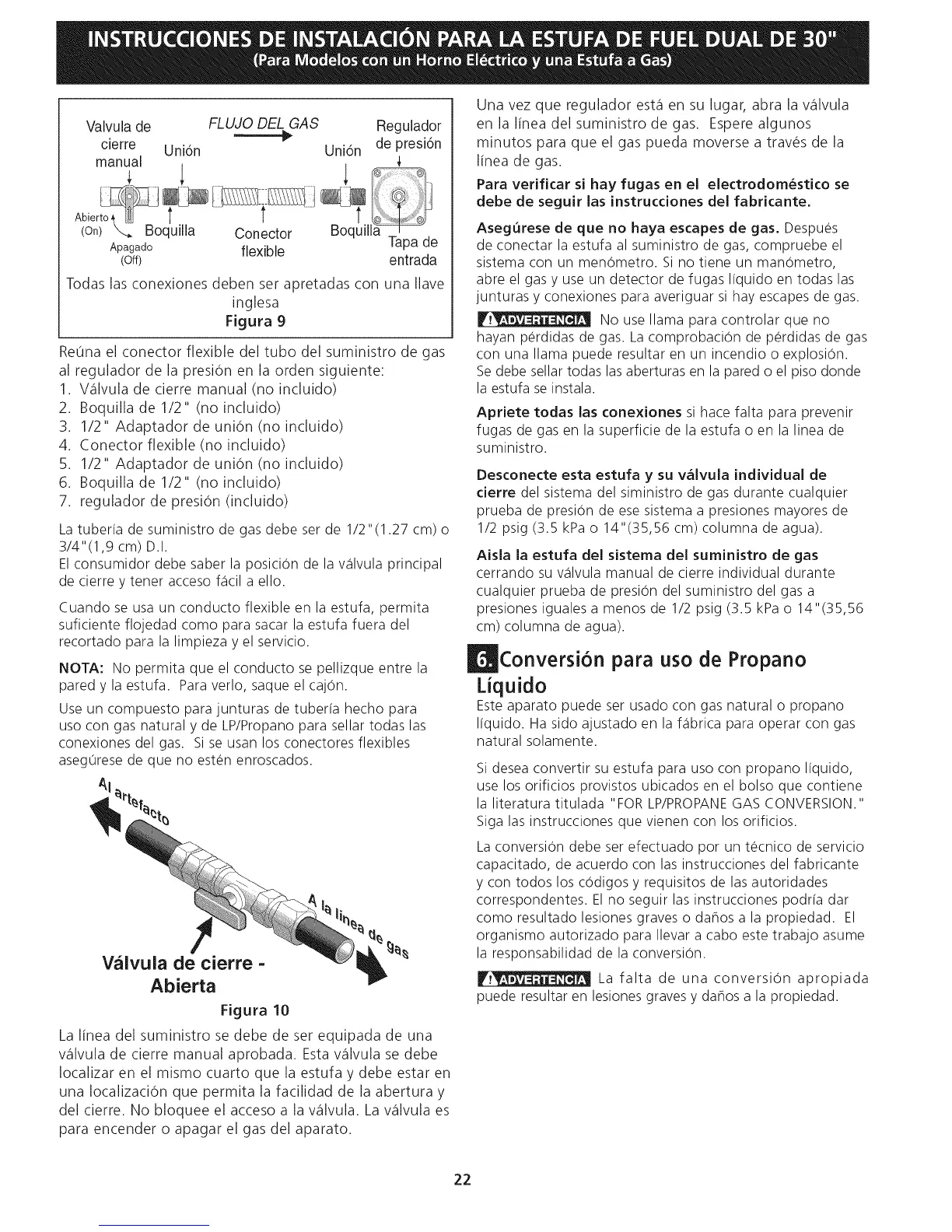 de conectar la estufa al suministro de gas, compruebe el