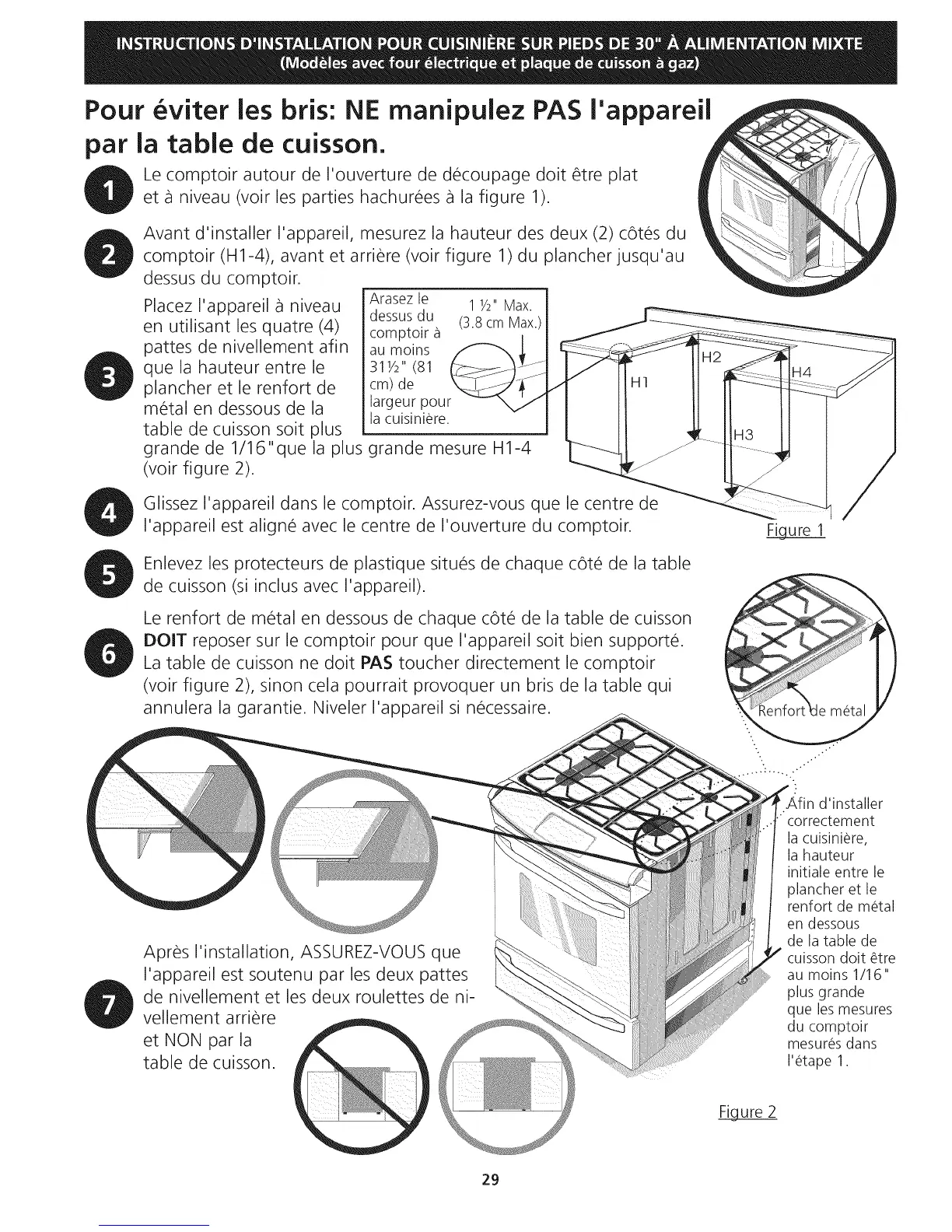 comptoir (H1-4), avant et arriere (voir figure 1) du plancher jusqu'au