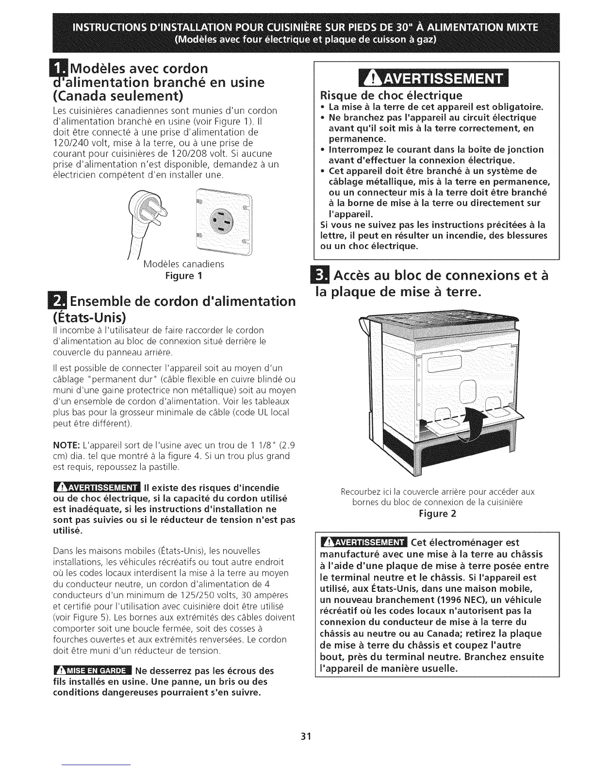 Les cuisinieres canadiennes sont munies d'un cordon
