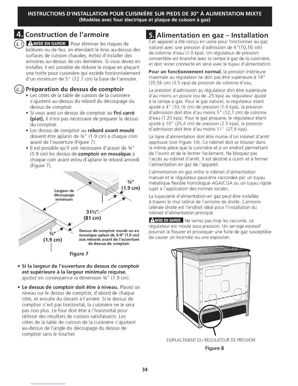 • Si la largeur de I'ouverture du dessus de comptoir