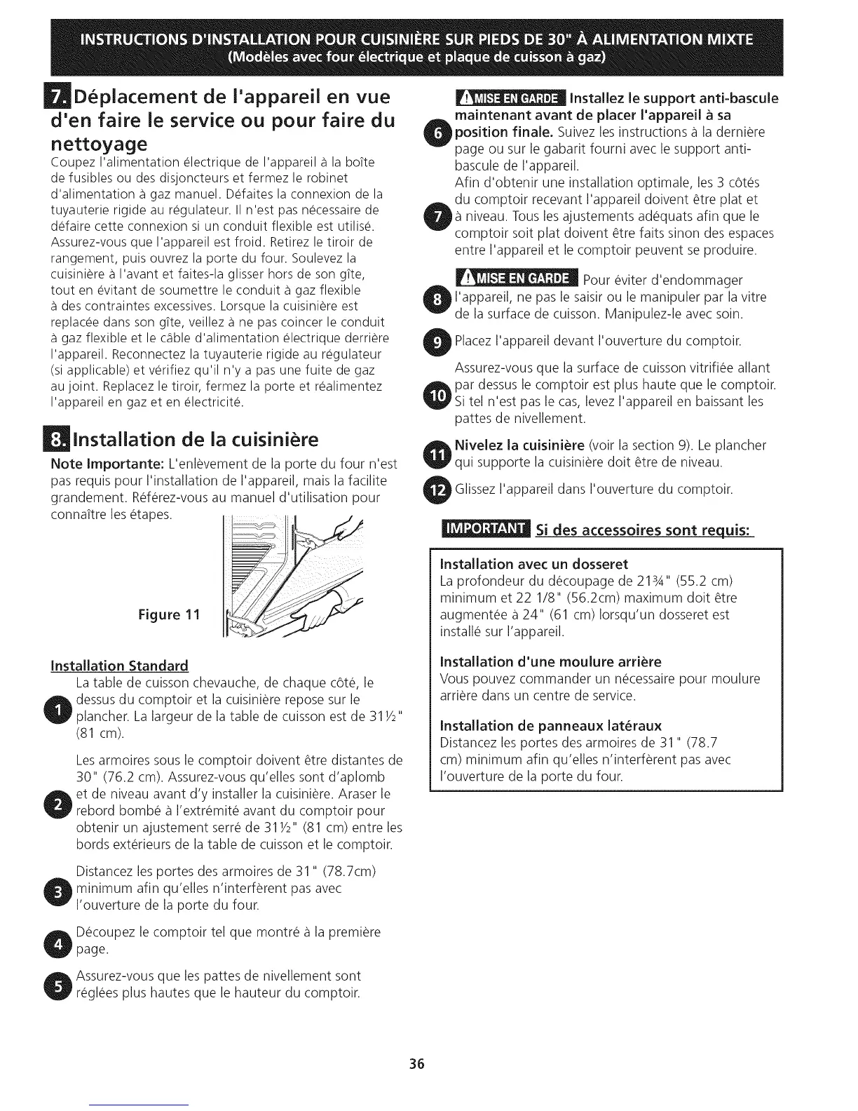 30" (76.2 cm). Assurez-vous qu'elles sont d'aplomb