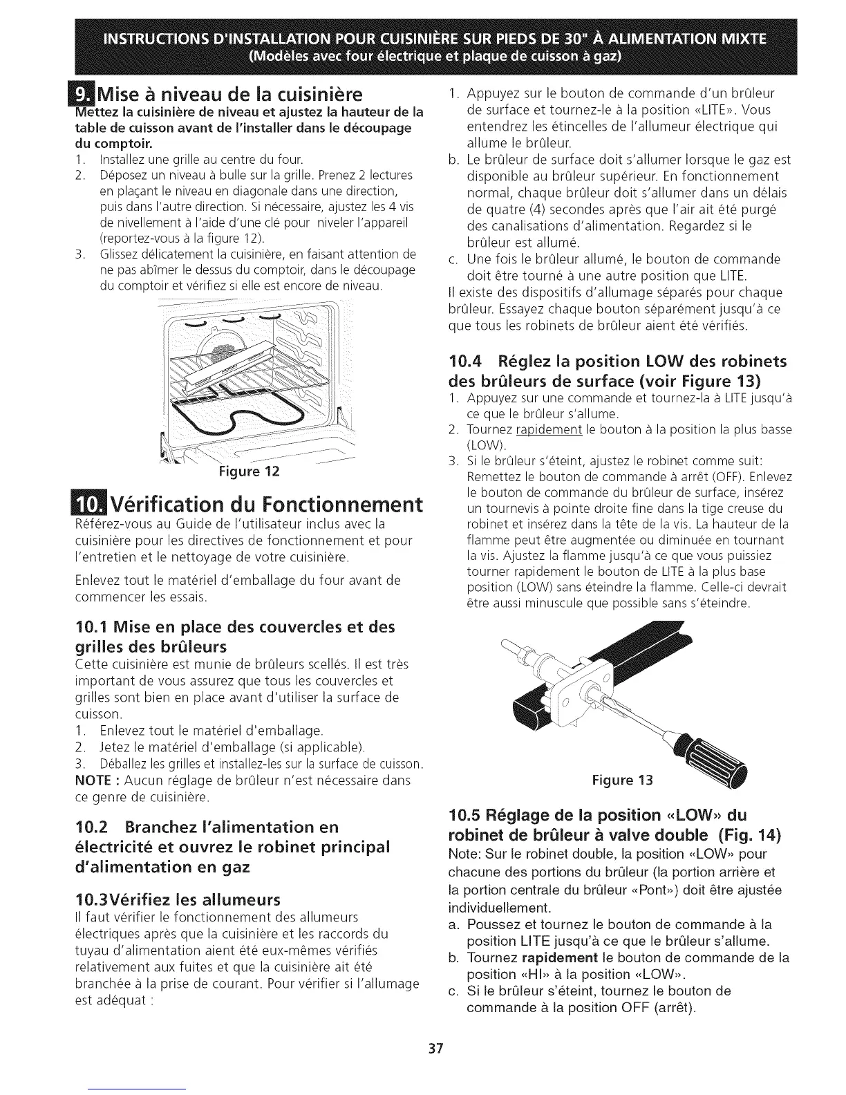 10.4 Reglez ia position LOW des robinets