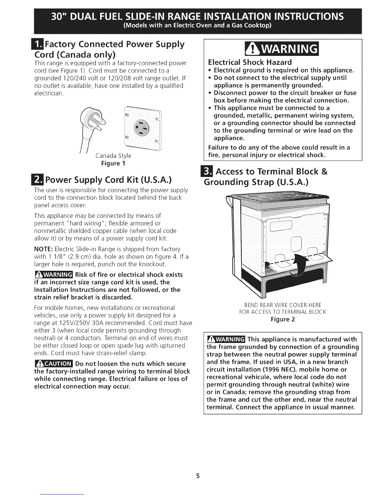 grounded 120/240 volt or 120/208 volt range outlet. If