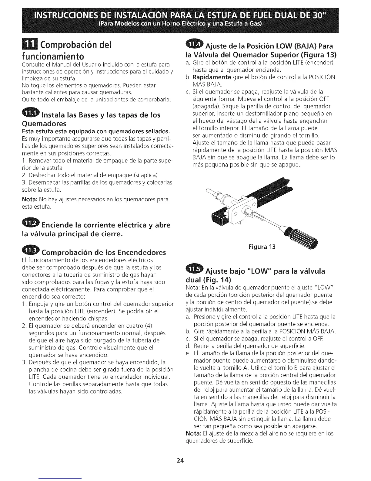 ia Valvula del Quemador Superior (Figura 13)