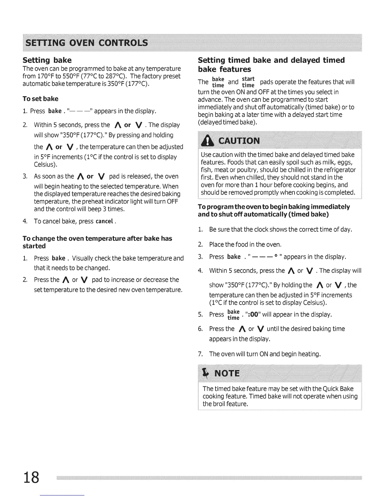 cooking feature. Timed bake will not operate when using