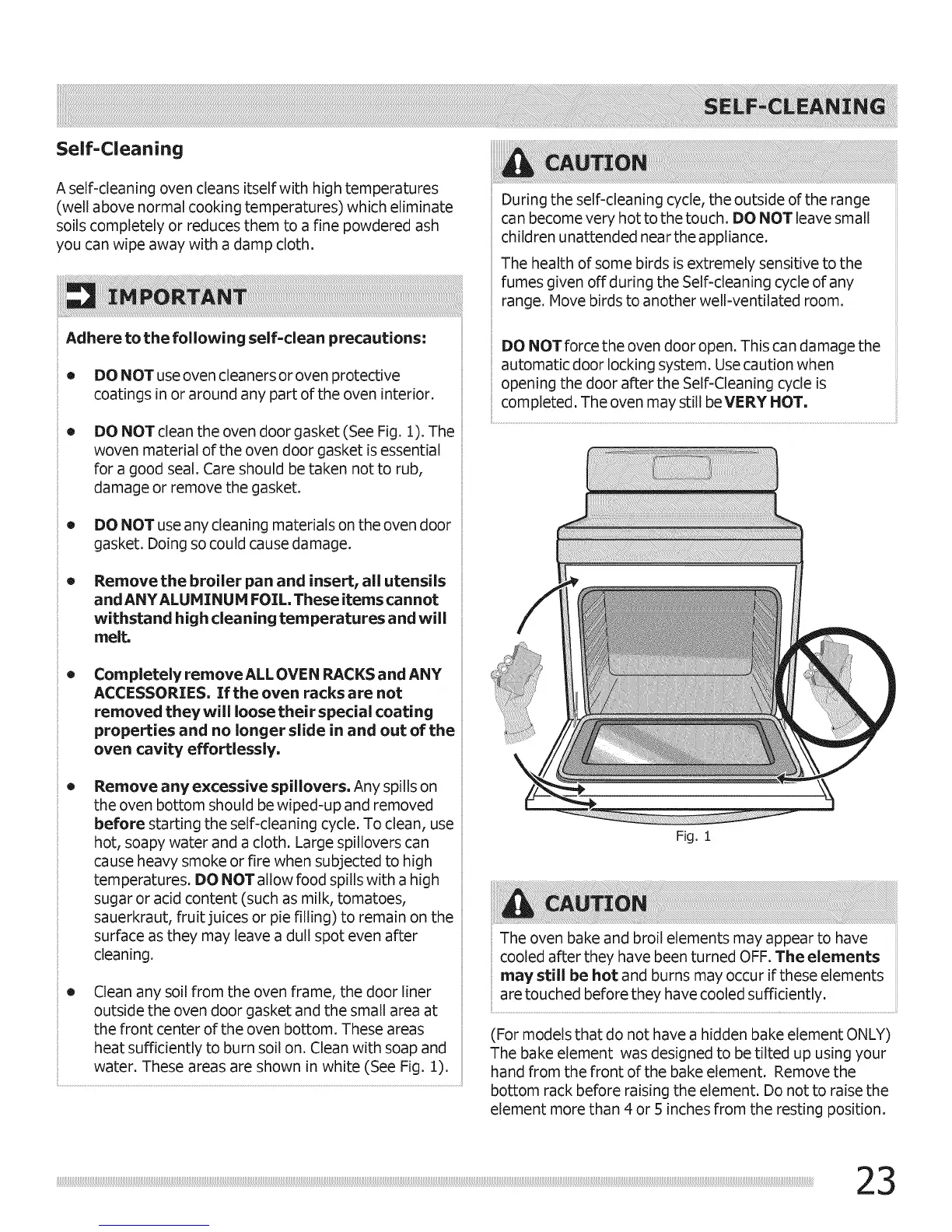 Adhere to the following self-clean precautions: