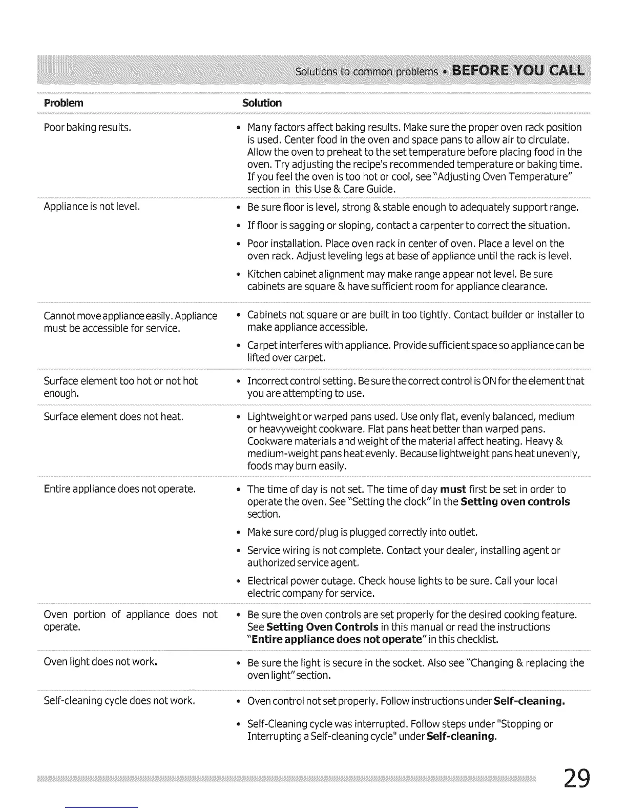 Self-cleaning cycle does not work. * Oven control not set properly. Follow instructions under Self=cleaning.