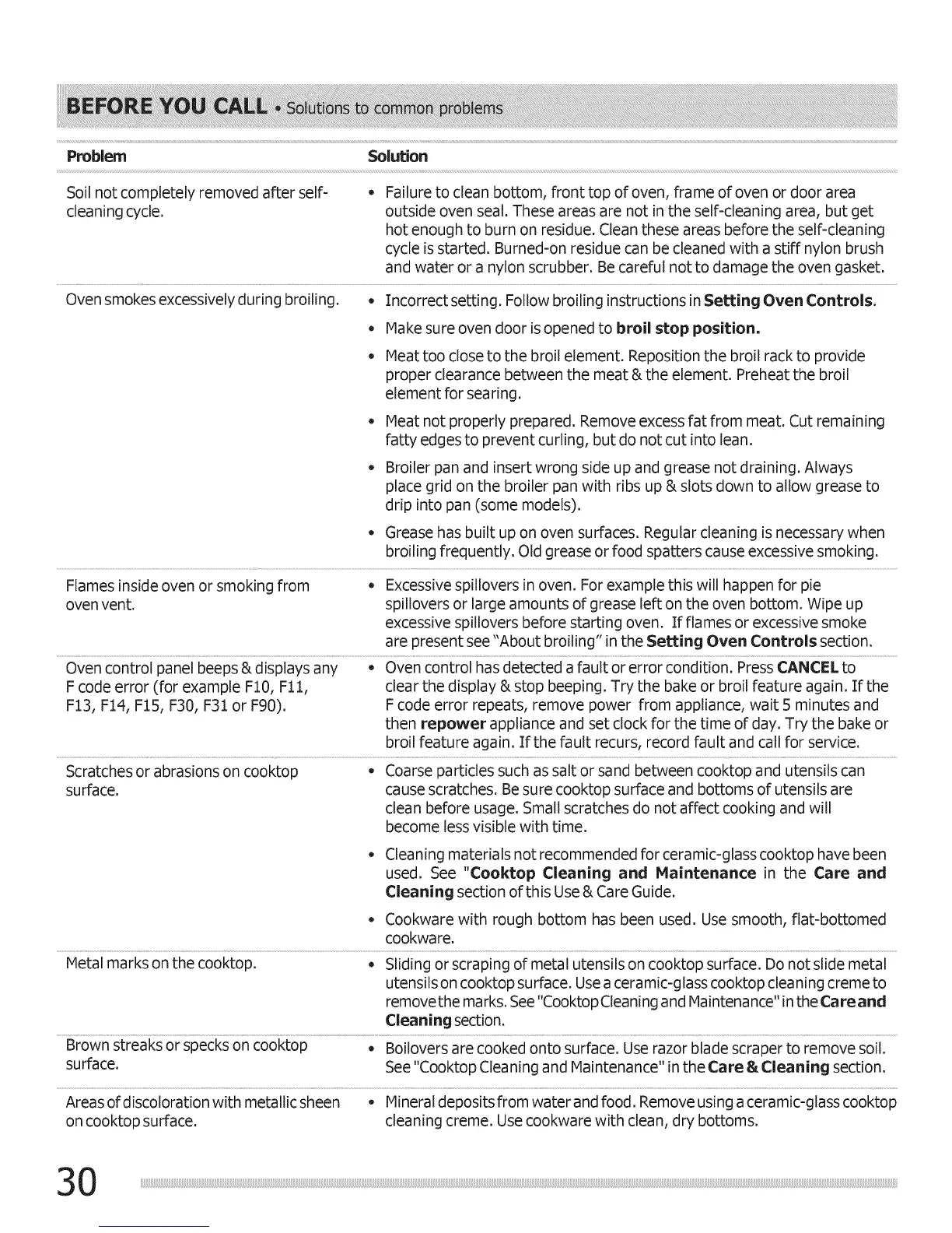 Oven smokes excessively during broiling. - Incorrect setting. Follow broiling instructions in Setting Oven Controls.