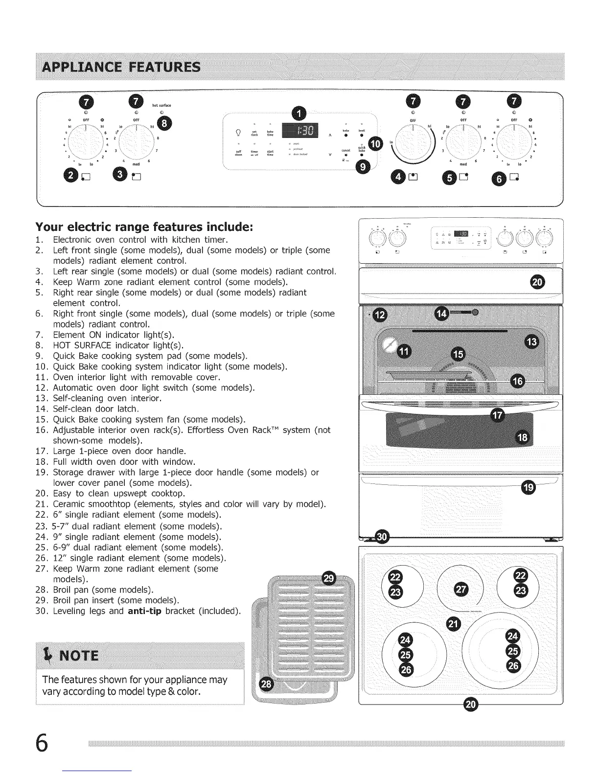 21. Ceramic smoothtop (elements, styles and color will vary by model).