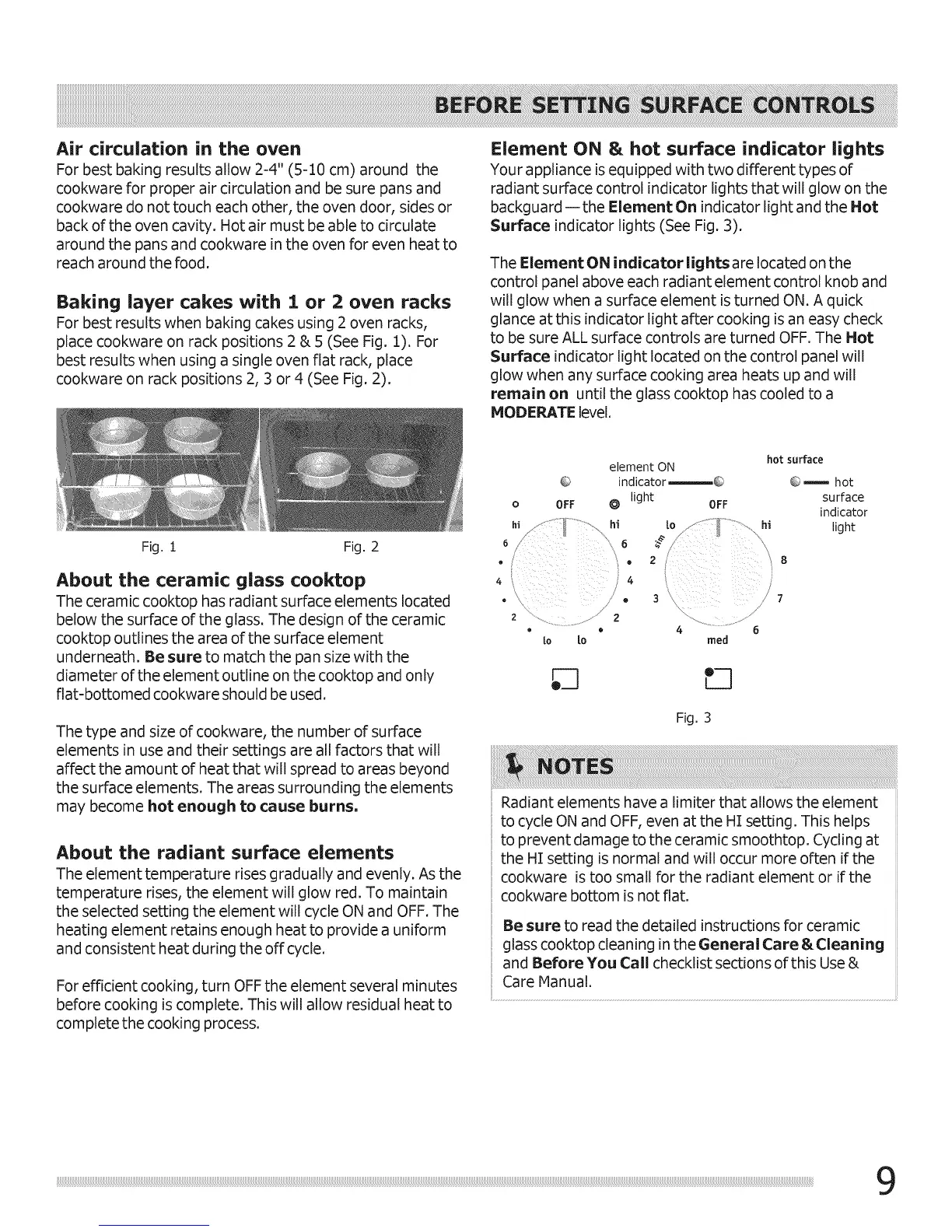 place cookware on rack positions 2 & 5 (See Fig. 1). For