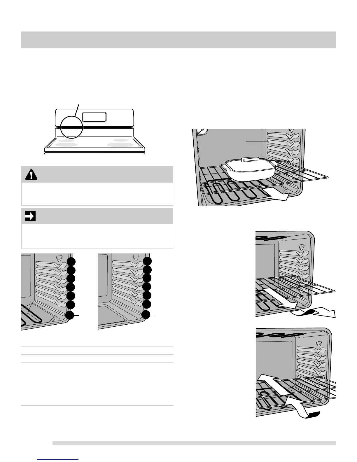 Do not remove or attempt to arrange oven racks with