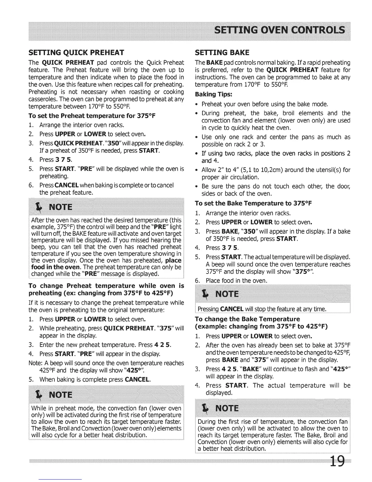 the oven. Use this feature when recipes call for preheating.