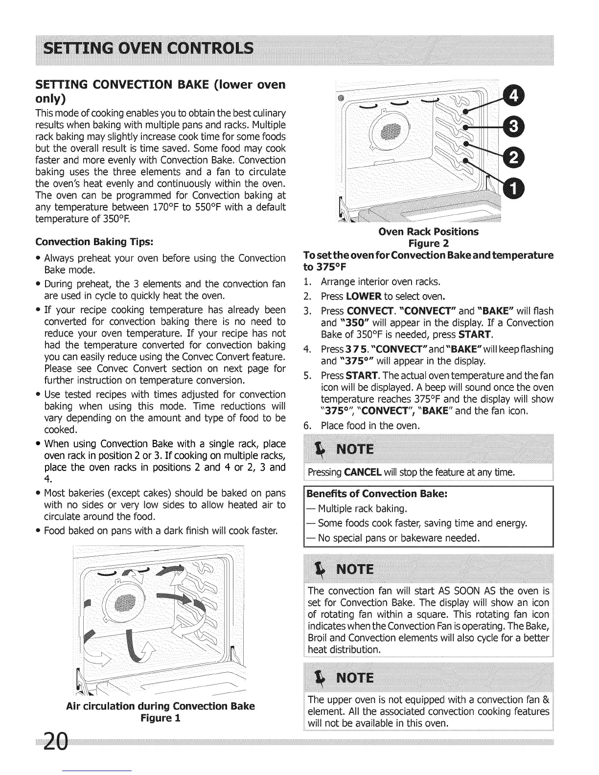 SETTING CONVECTION BAKE (lower oven