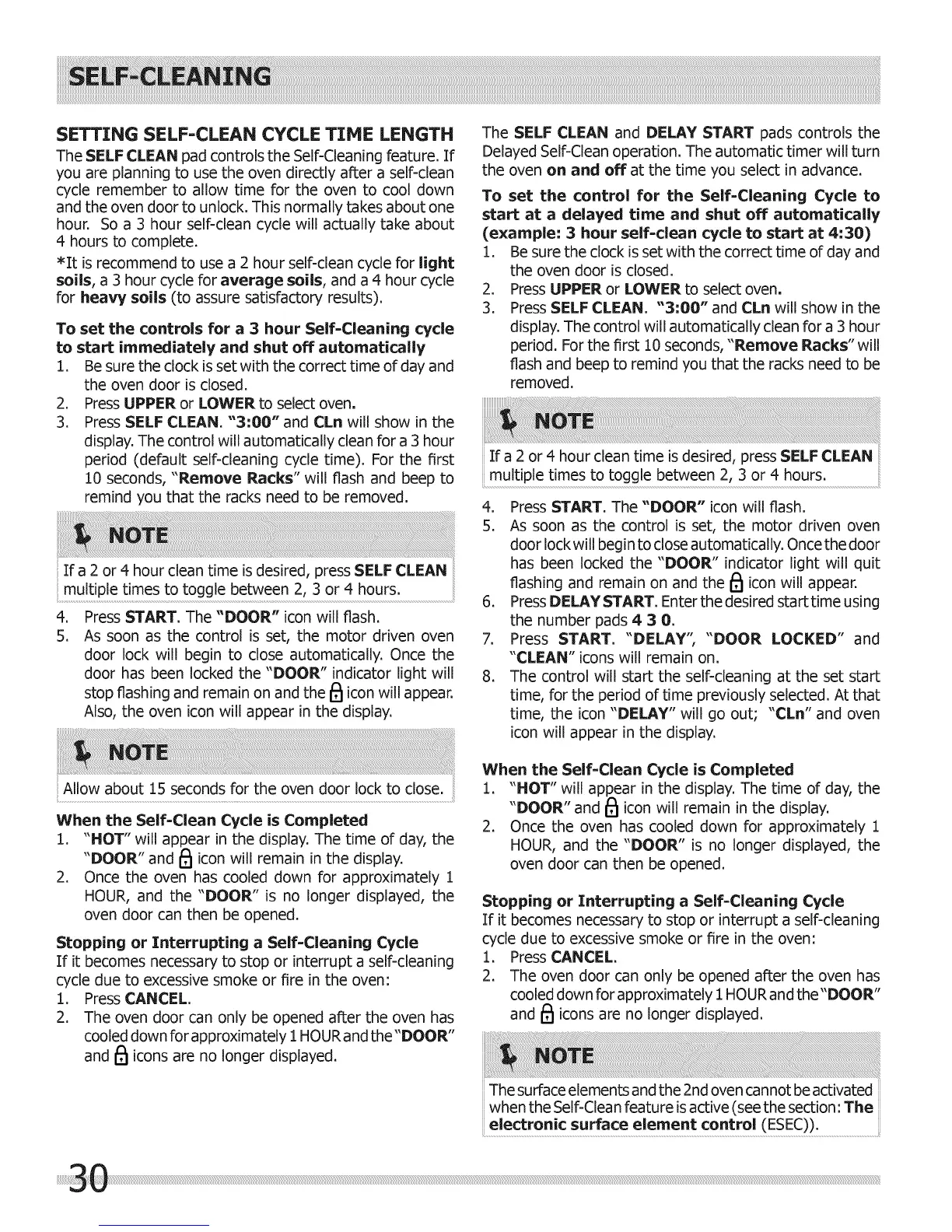 3. Press SELF CLEAN. "3:00" and CLn will show in the